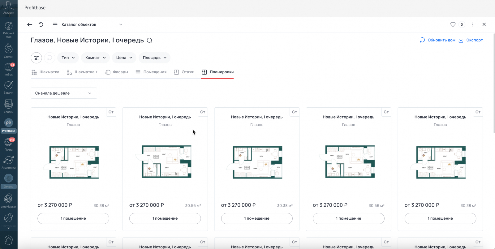 - Интегрировать CRM с базой объектов (Profitbase) для удобного бронирования квартир
