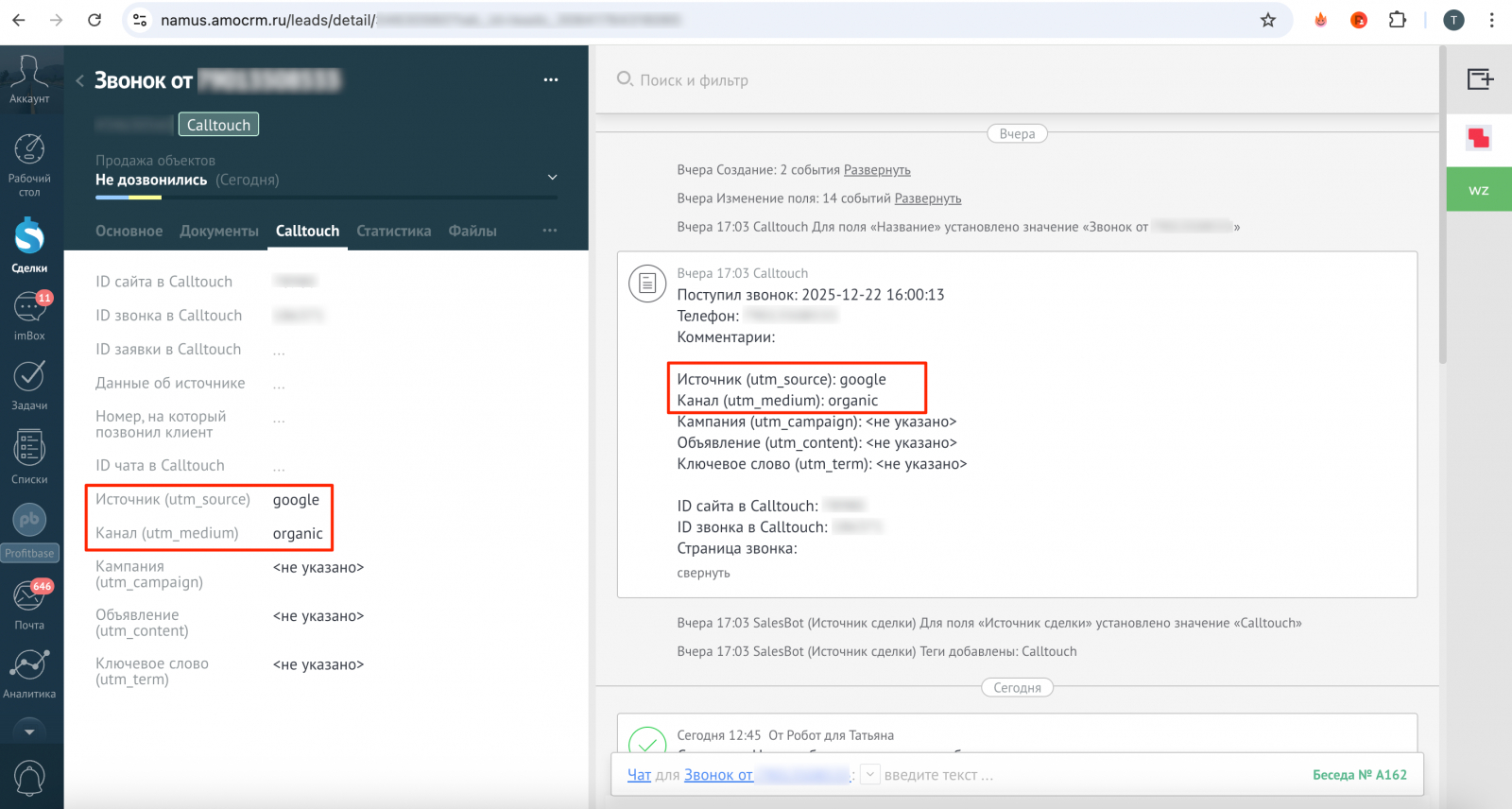 - Централизация 100%. Все обращения из разных каналов (сайт, телефония, мессенджеры, рекламные подменные номера) автоматически фиксируются в amoCRM. Потеря заявок исключена.