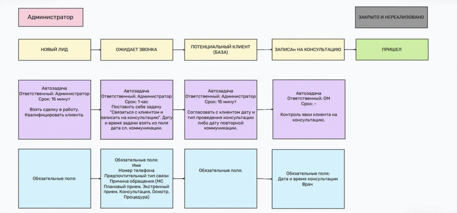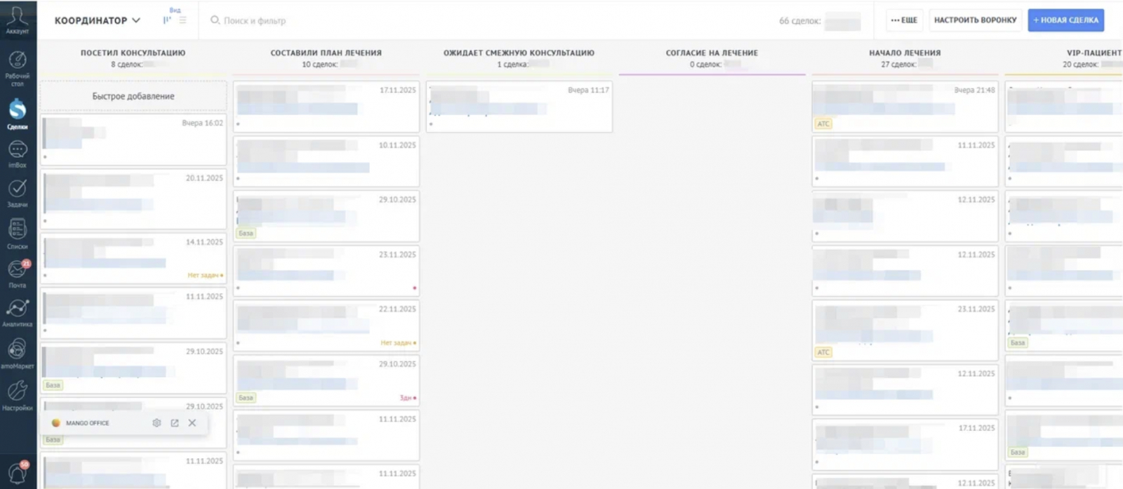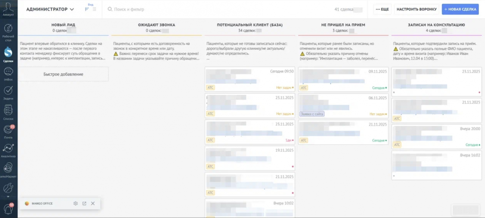 До внедрения CRM клиентская база велась разрозненно, информация фиксировалась менеджерами вручную. Отсутствие единой клиентской базы, сегментации и автоматизации приводило к сложностям в учёте клиентов, усложняло коммуникацию (сотрудники могли забыть вовремя связаться с пациентом) и создавало риски потери информации, так как приходилось тратить много времени на её поиск.