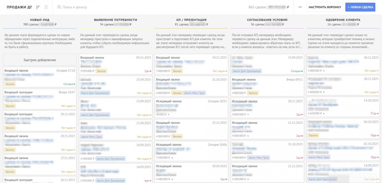 Клиентскую базу хранили в разных местах, заявки из мессенджеров и Авито часто терялись, а процесс продажи не был выстроен в одной системе, из-за чего компания теряла сделки.