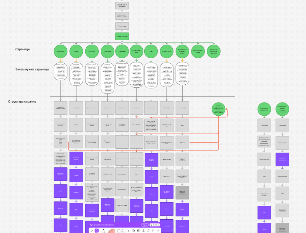 В рамках этого этапа была продумана общая архитектура сайта: как будет устроен основной проект, каким образом будут встроены партнёрские поддомены, как распределить информацию между разделами и как сделать навигацию понятной для пользователя. Главная цель этапа состояла в том, чтобы создать устойчивую основу, на которой можно развивать проект дальше без постоянных ограничений по структуре и логике.