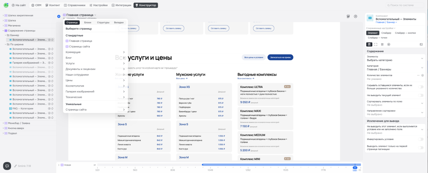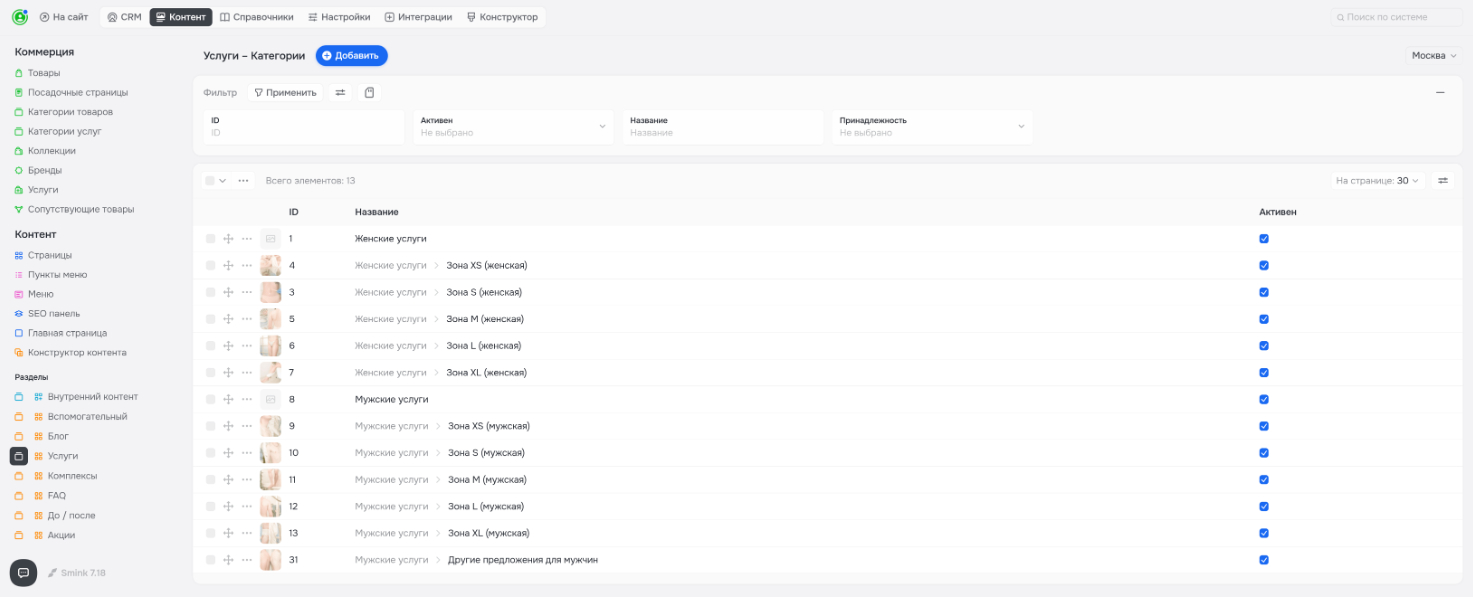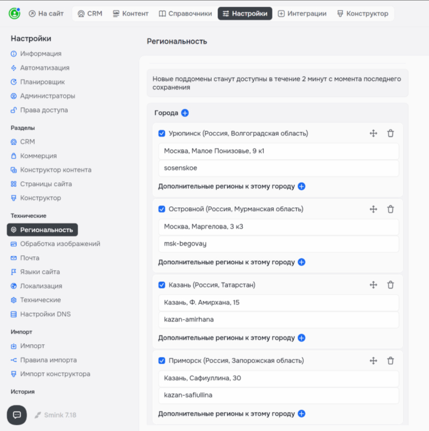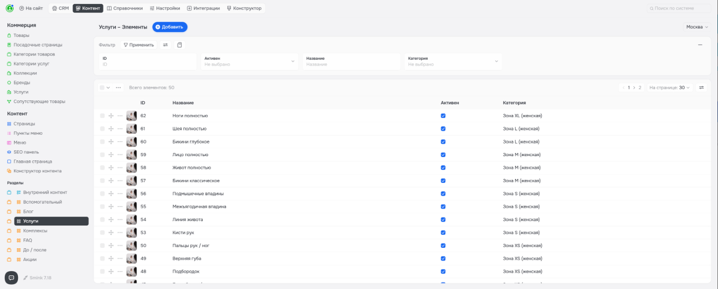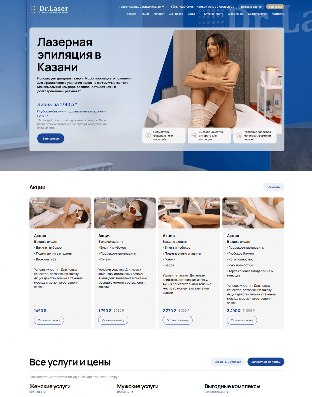Клиенту требовалось заменить лендинг на Tilda на современный многостраничный сайт для региональной сети клиник. Основная задача заключалась в том, чтобы создать систему поддоменов с гибким управлением контентом по каждому городу: услугами, ценами, акциями, контактами и другими данными.