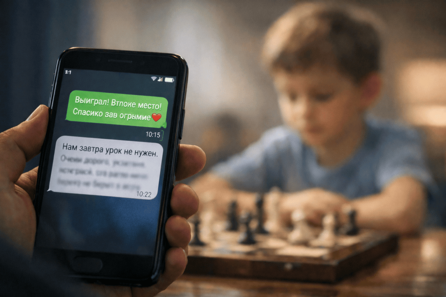 Я это к чему? Результат — это просто цифры в таблице. Он не делает ребёнка умнее или глупее. Он не отменяет того, что шахматы — это длинная история. Но когда взрослого качает, ему нужен якорь. Кто-то, кто не меняет мнение о ребёнке после одного проигрыша и не ставит сердечки только за пьедестал.