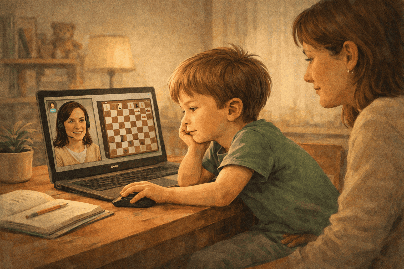 Внезапно, но одних знаний шахмат мало. Хороший детский тренер умеет быть с ребёнком так, чтобы тот не выключался, не терял интерес и не начинал отвлекаться. Или хотя бы не смотрел на часы с видом человека, который прожил маленькую, но очень насыщенную жизнь. Посмотрите, как тренер: