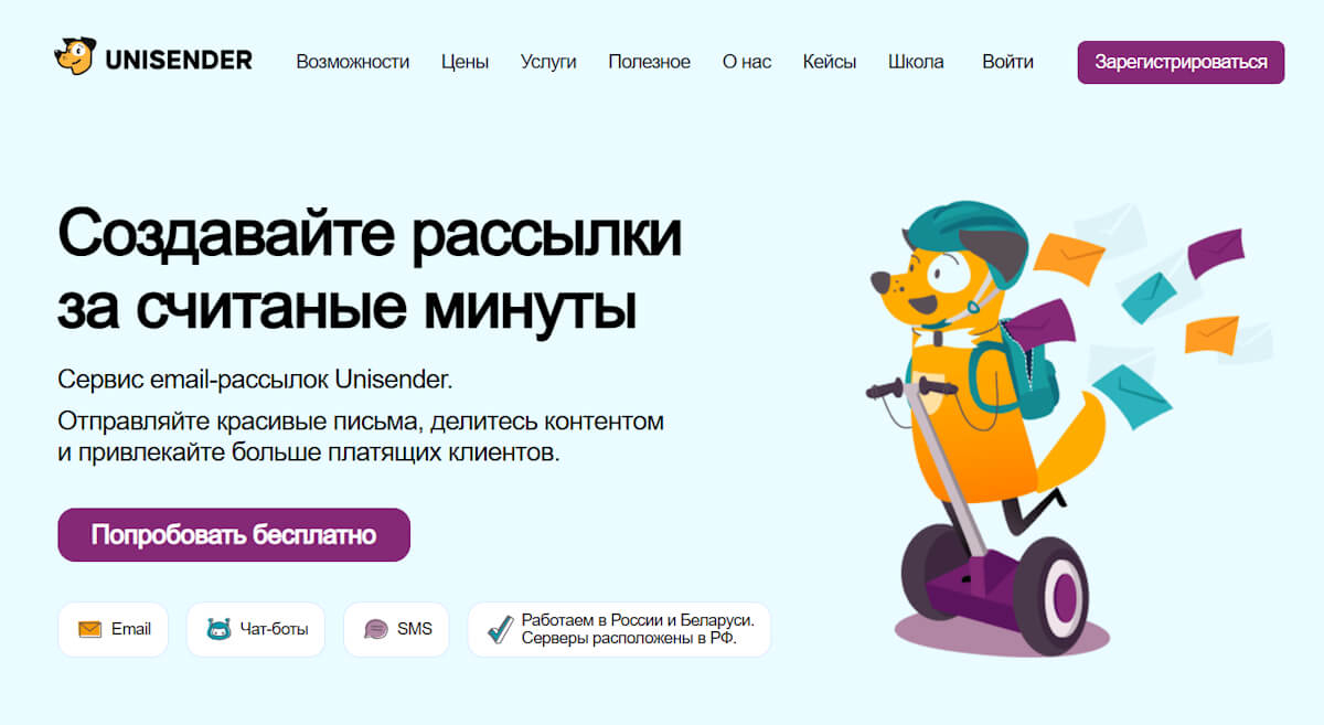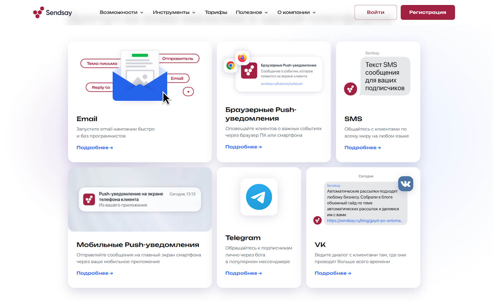 Принципиальное отличие — Customer Data Platform: сервис собирает данные о клиенте с сайта, из email, мобильного приложения и CRM, объединяя их в единую карточку. Это позволяет, например, отправить SMS с напоминанием о товаре, просмотренном с мобильного и добавленном в избранное с десктопа. Серверы в РФ, доставляемость ~100%.