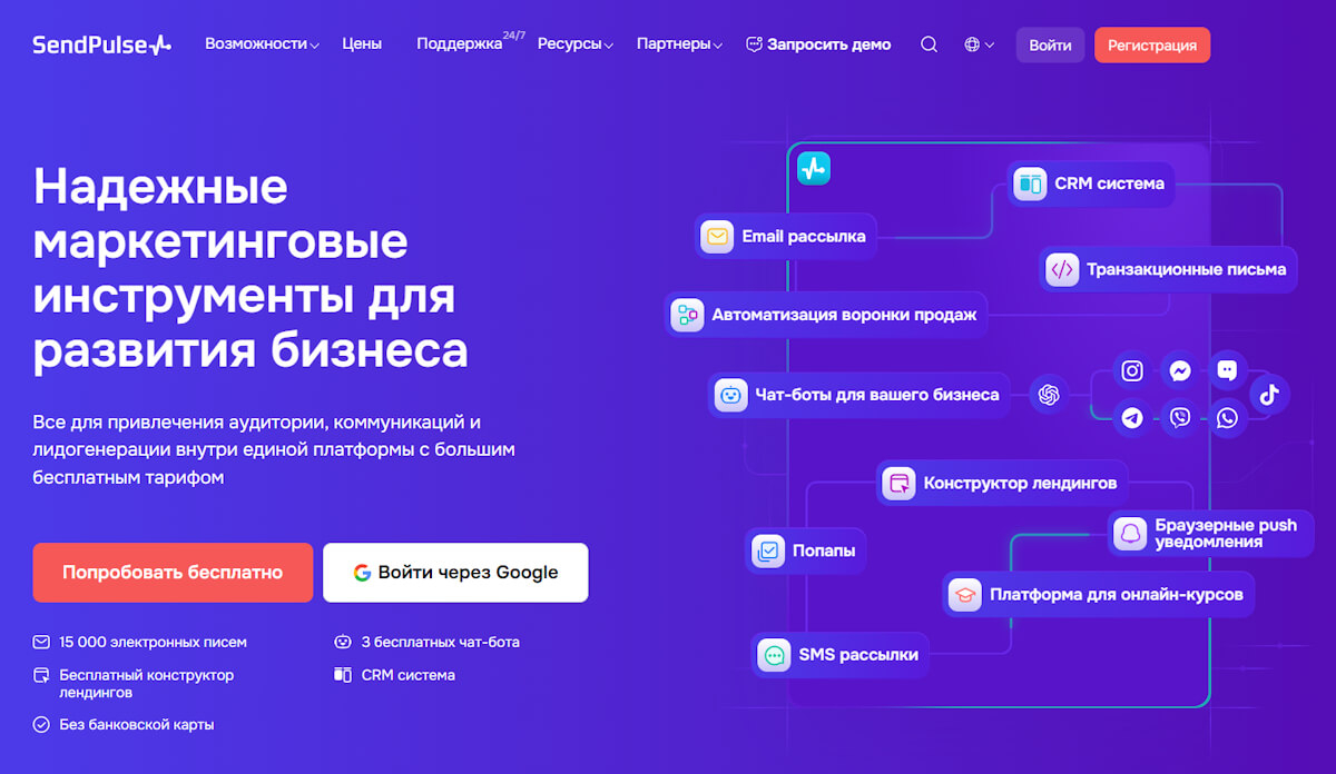 SendPulse объединяет четыре канала в единой экосистеме — email, SMS, web push и чат-боты в мессенджерах. Для интернет-магазина это возможность выстроить каскадные коммуникации через разные каналы, увеличивая вероятность возврата клиента.