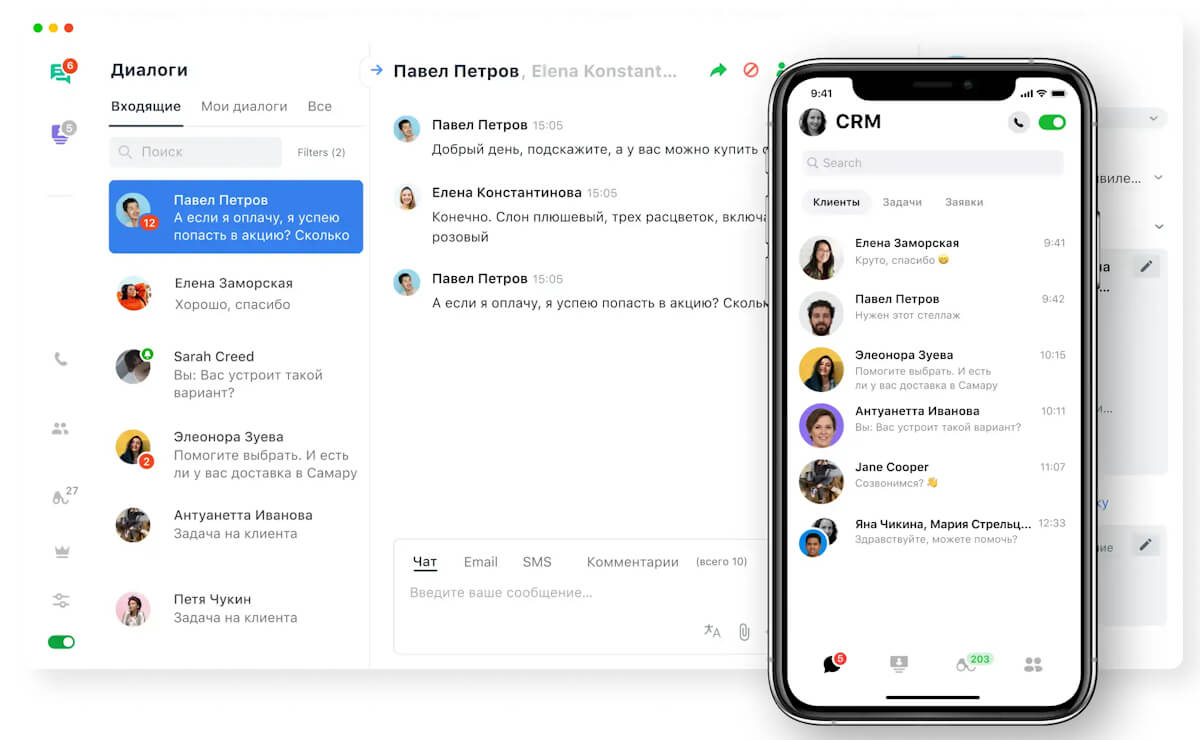 JivoSite — самый распространённый онлайн-чат на российских сайтах: ежедневно через платформу общаются с клиентами более 65 000 операторов. Оператор видит обращения из WhatsApp, VK, Telegram, email и звонки в одном окне с единой историей клиента.