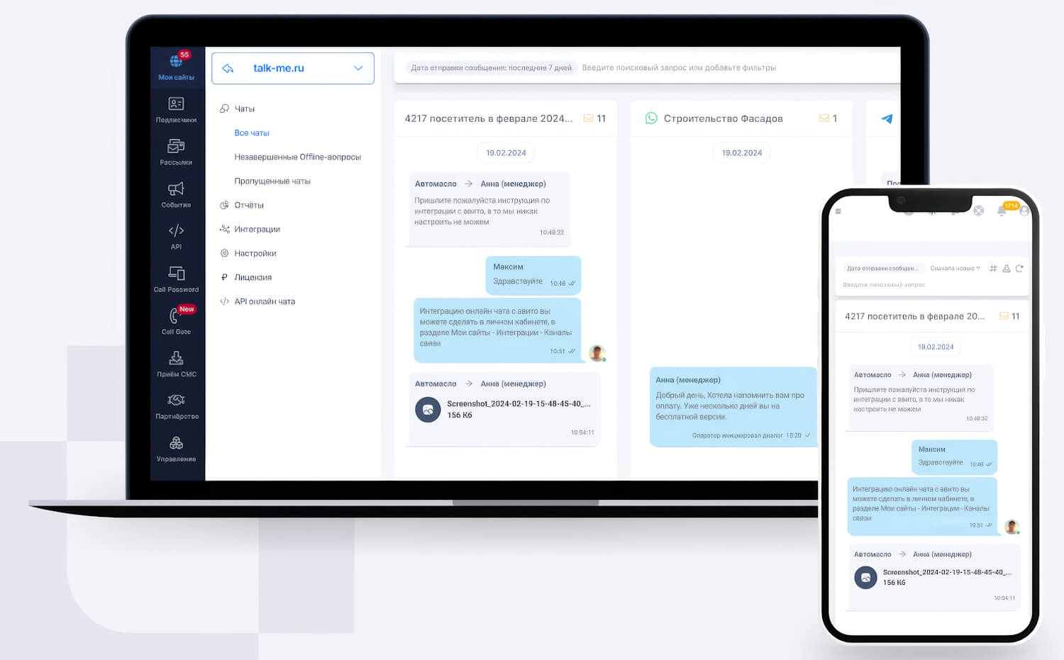Talk-Me сочетает коммуникации с клиентами, встроенную CRM и ИИ для продаж без участия оператора. Виджеты установлены на ~4 000 сайтов в Рунете, более 1 700 компаний используют платформу для продаж и поддержки.
