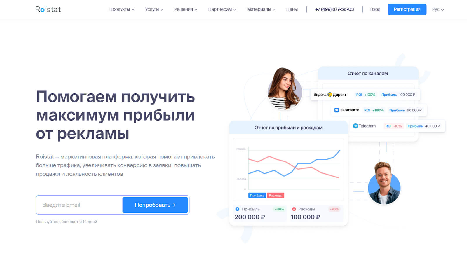 Если Метрика показывает, что происходит на сайте, то Roistat отвечает на главный вопрос: какой рекламный канал приносит прибыль. Платформа с 23+ инструментами связывает расходы на рекламу с реальными продажами из CRM. Более 30 000 компаний используют Roistat, сервис включён в реестр российского ПО.