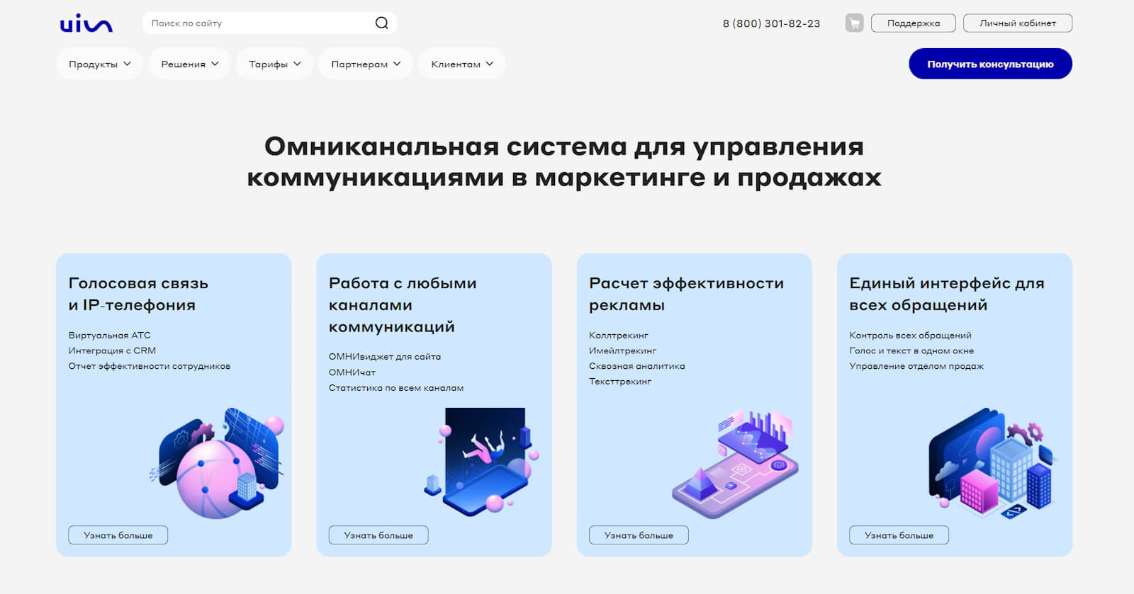 CoMagic объединяет виртуальную АТС, коллтрекинг и сквозную аналитику в одном продукте. Для интернет-магазинов с высокой долей телефонных заказов (мебель, электроника, стройматериалы) сервис закрывает критичную слепую зону: связь звонка с конкретным рекламным объявлением и ключевым словом. UIS входит в ТОП-3 ВАТС и IP-телефонии 2026 года, доступность сети — 99,97%.