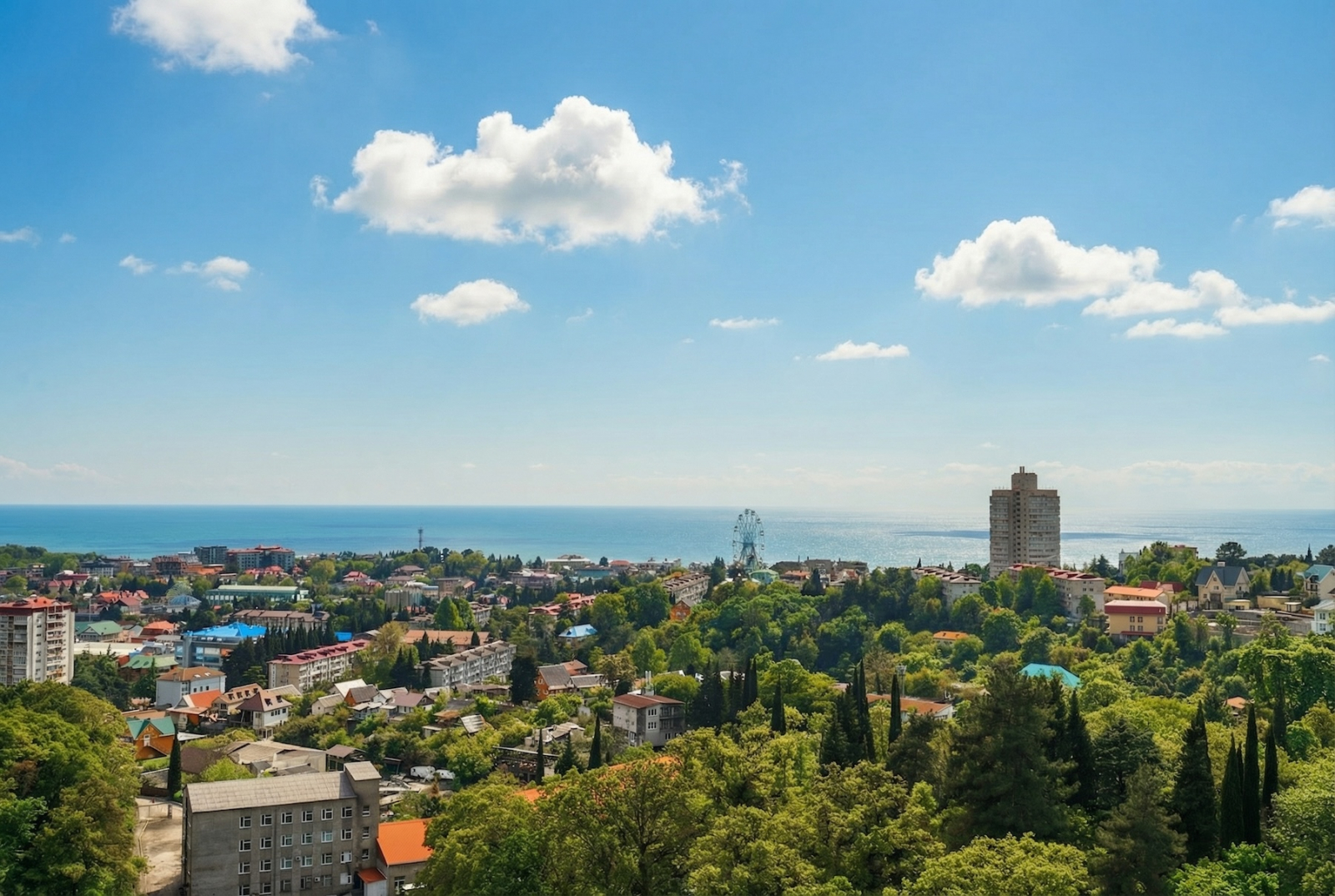 До моря юлить не буду — минут 25 пешком, причём вниз, а обратно… ну, Сочи, кто в теме тот поймёт. Не первая линия, а вот эта самая лазаревская классика: «живу на море, но купаюсь раз в неделю — потому что лень спускаться, а уж потом подниматься».
