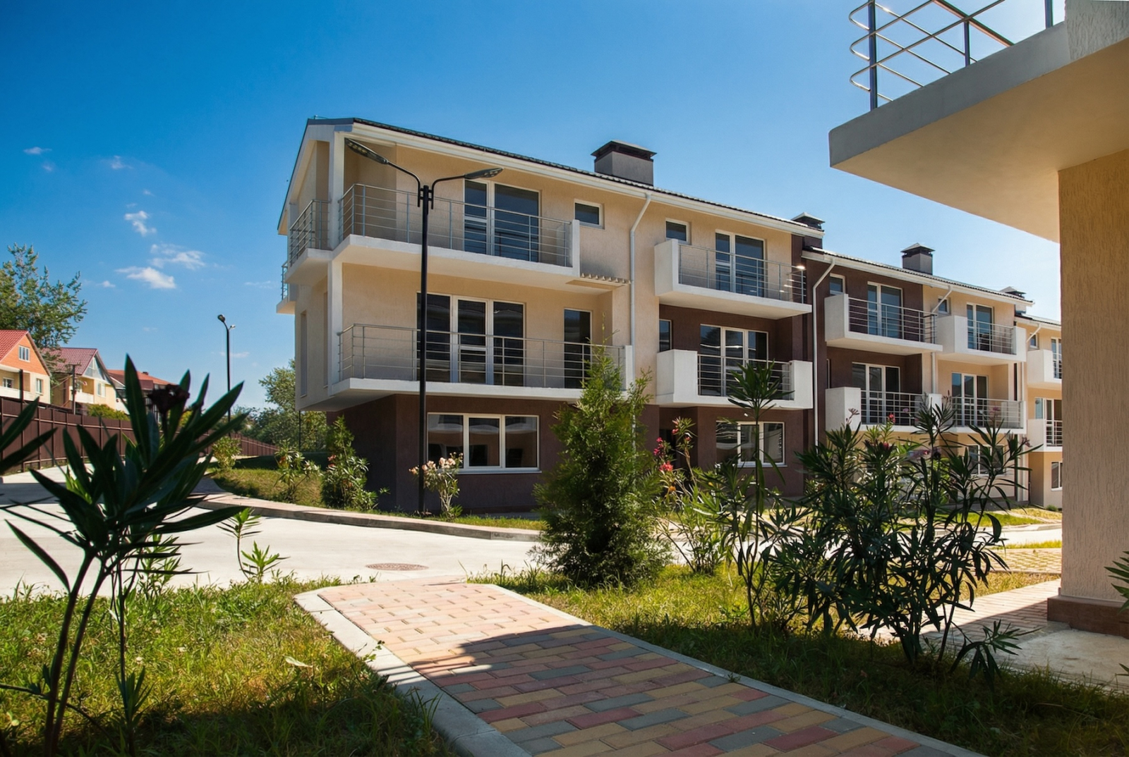 Ты выходишь из дома — не из муравейника для ипотечных героев, а из собственного трёхэтажного таунхауса с лужайкой, на которой вечером философствуют друзья под шум моря и игристое «Шардоне». До воды — пятьнадцать минут, не если ты олимпийский чемпион, а по-настоящему. Пока думаешь, куда ставить лежак, понимаешь: вот оно, счастье, рядом.