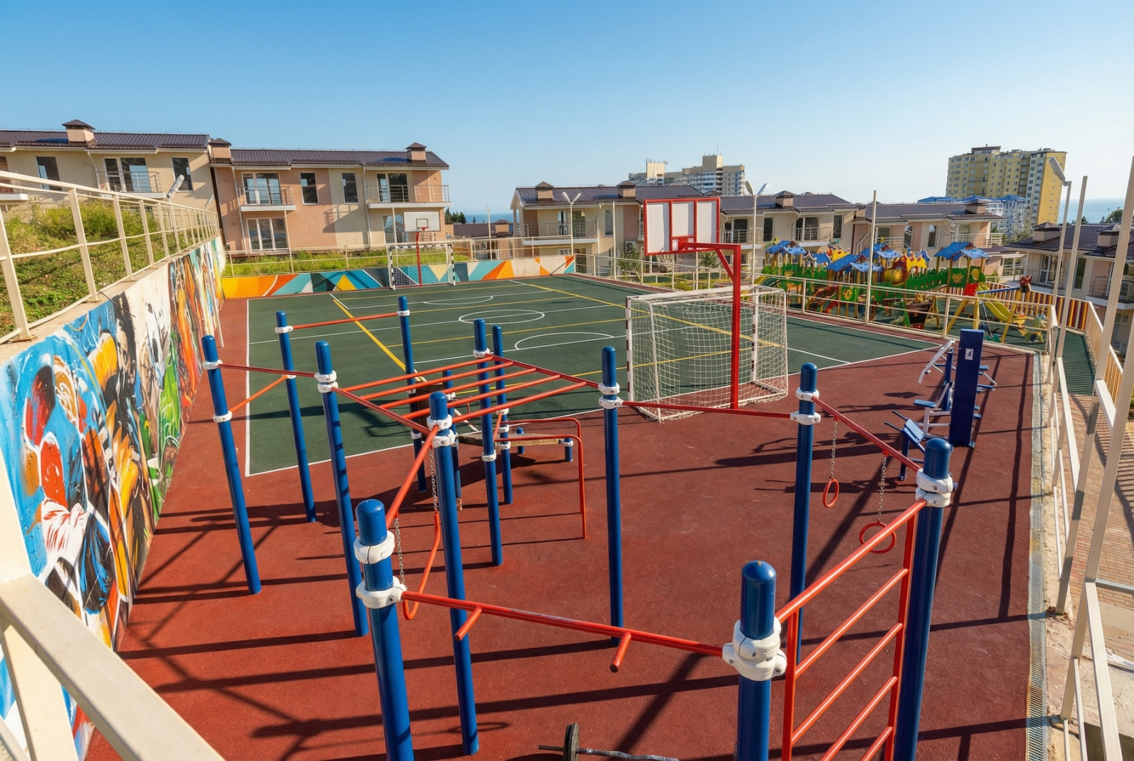 Для ленивых — бассейн, чтобы вообще без надобности утруждать себя пляжем. Для голодных — кафе. Для детей и вечно бодрых взрослых — площадки, где все умирают от усталости и к вечеру мирно смотрят мультики или сериалы. Слово «инфраструктура» здесь звучит не как обещание на пятилетку, а как стандарт жизни.