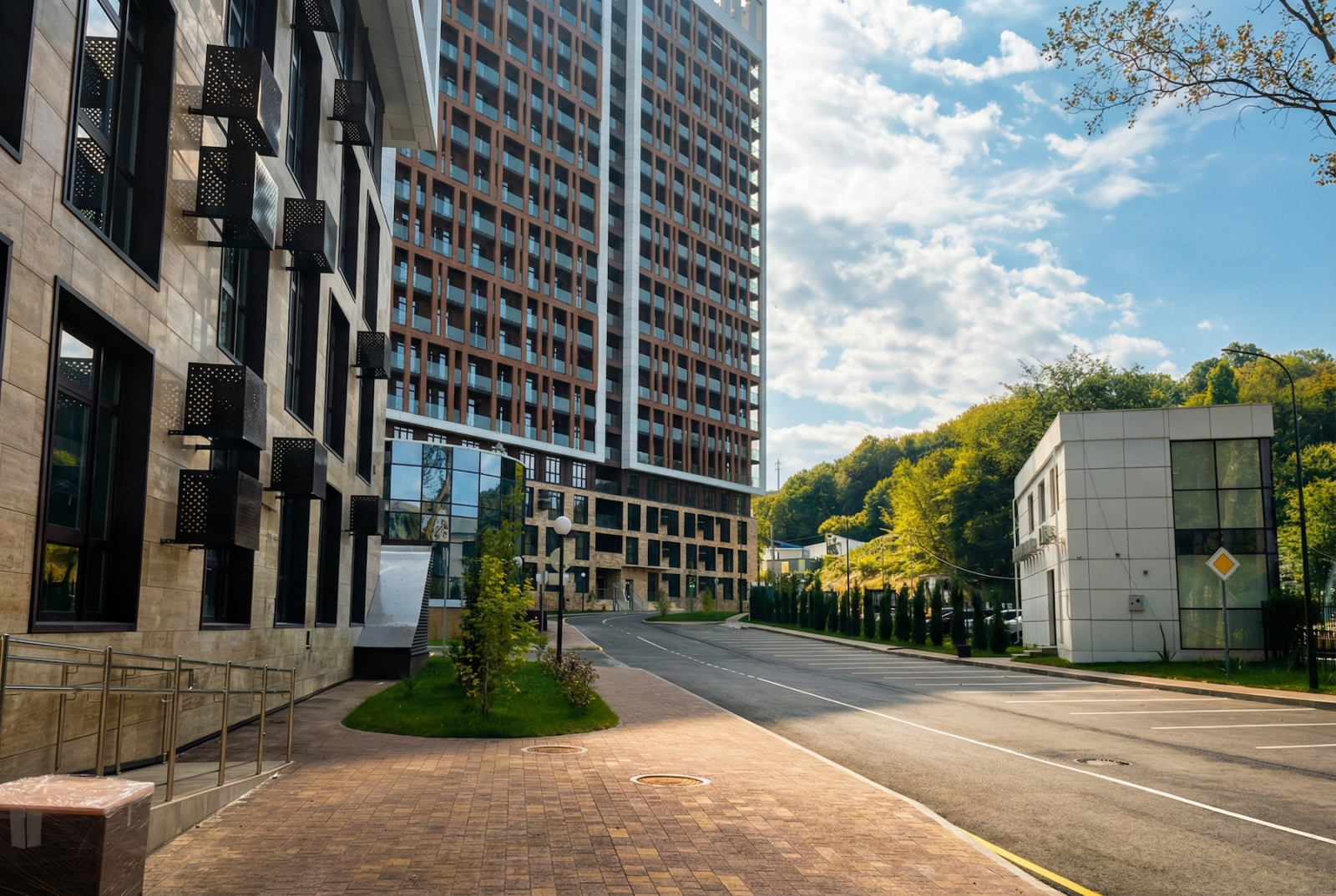 Как бы пафосно это ни звучало, но если бы мне пару лет назад сказали, что в Дагомысе появится достойный бизнес-класс с бассейном, я бы только усмехнулся. Но вот он — реальность. Теперь тут не просто привычные пятиэтажки с видом на абрикосы, а целый комплекс: бассейн, площадки для детей и спорта, газоны, охрана. До моря — двадцать минут прогулочного шага, который можно растянуть от удовольствия.