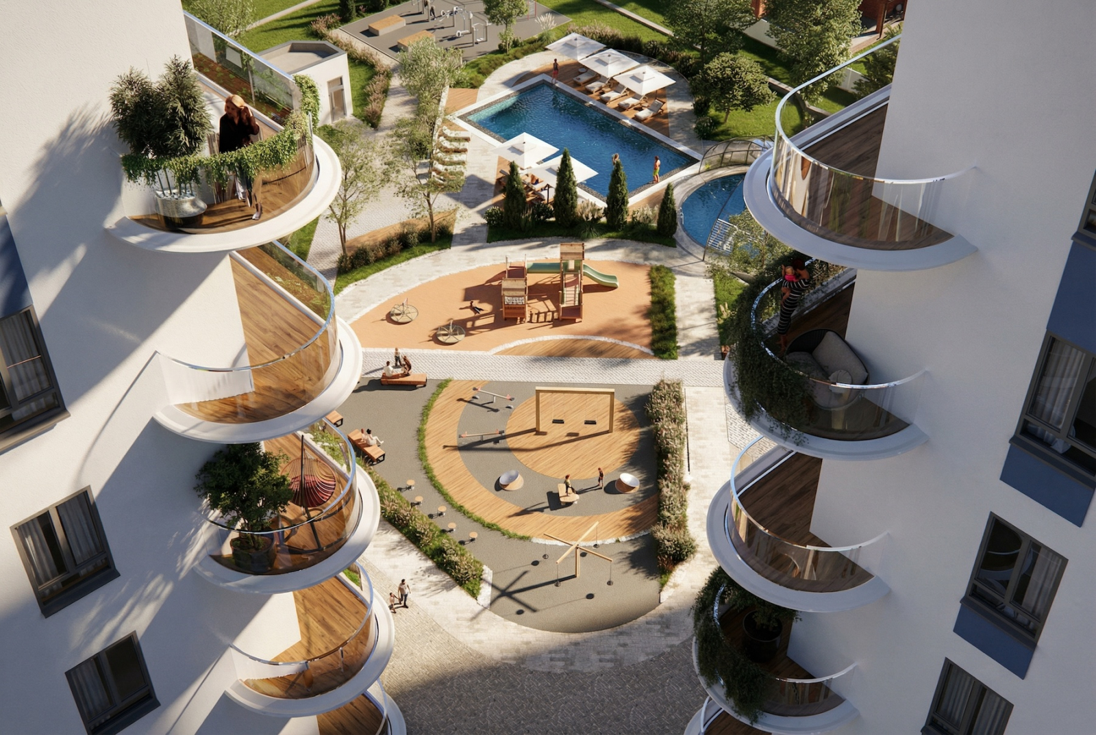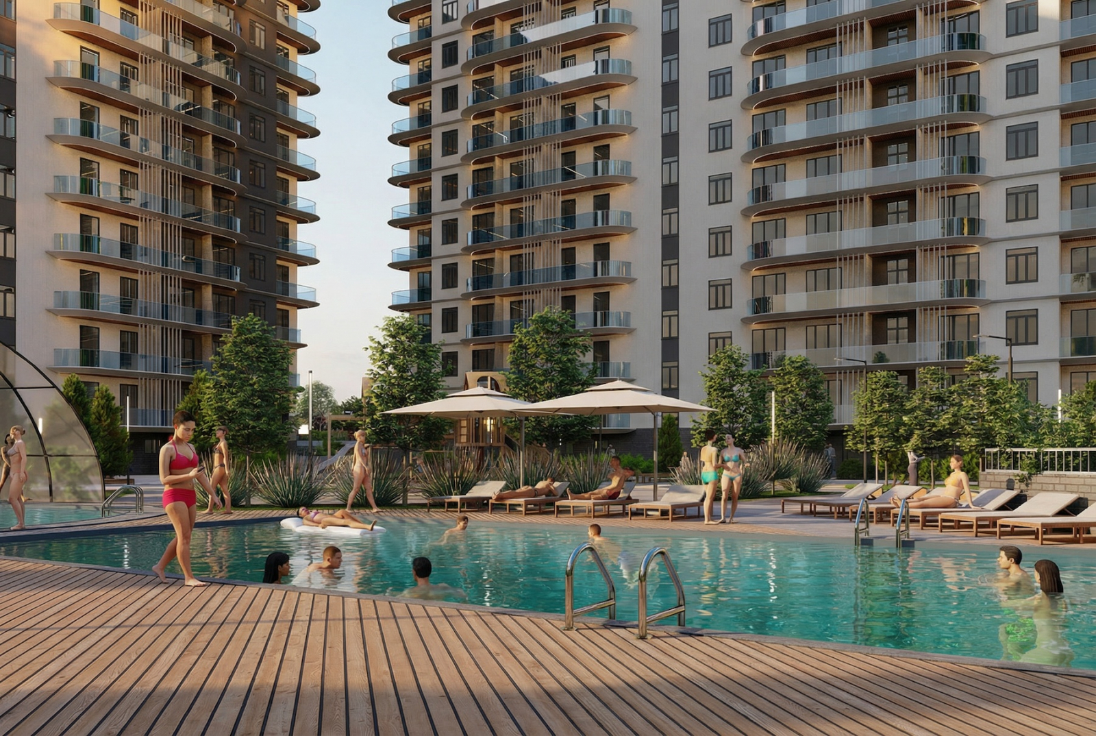 «Аллея Дружбы» — это два двенадцатиэтажных корпуса. Высота достаточная, чтобы с утра помахать чайкам, а если повезёт — даже соседу на балконе. Во дворе бассейн — значит, никакая погода не отменяет лето. Есть детская площадка, спортивная зона, а управляющая компания готова превращать ваш апартамент в золотую жилу, если решите стать рантье.