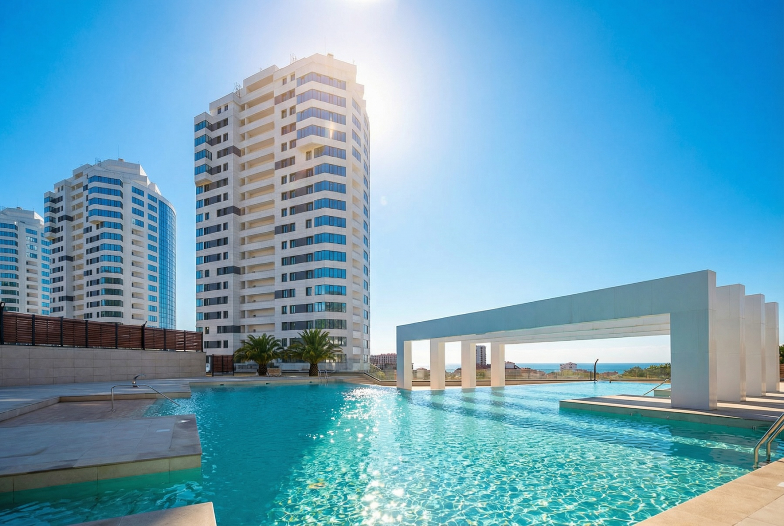 — бассейн, паркинг и до пляжа рукой подать.
