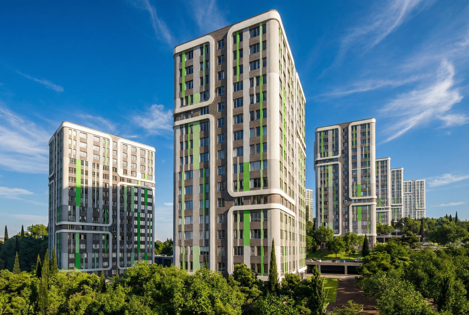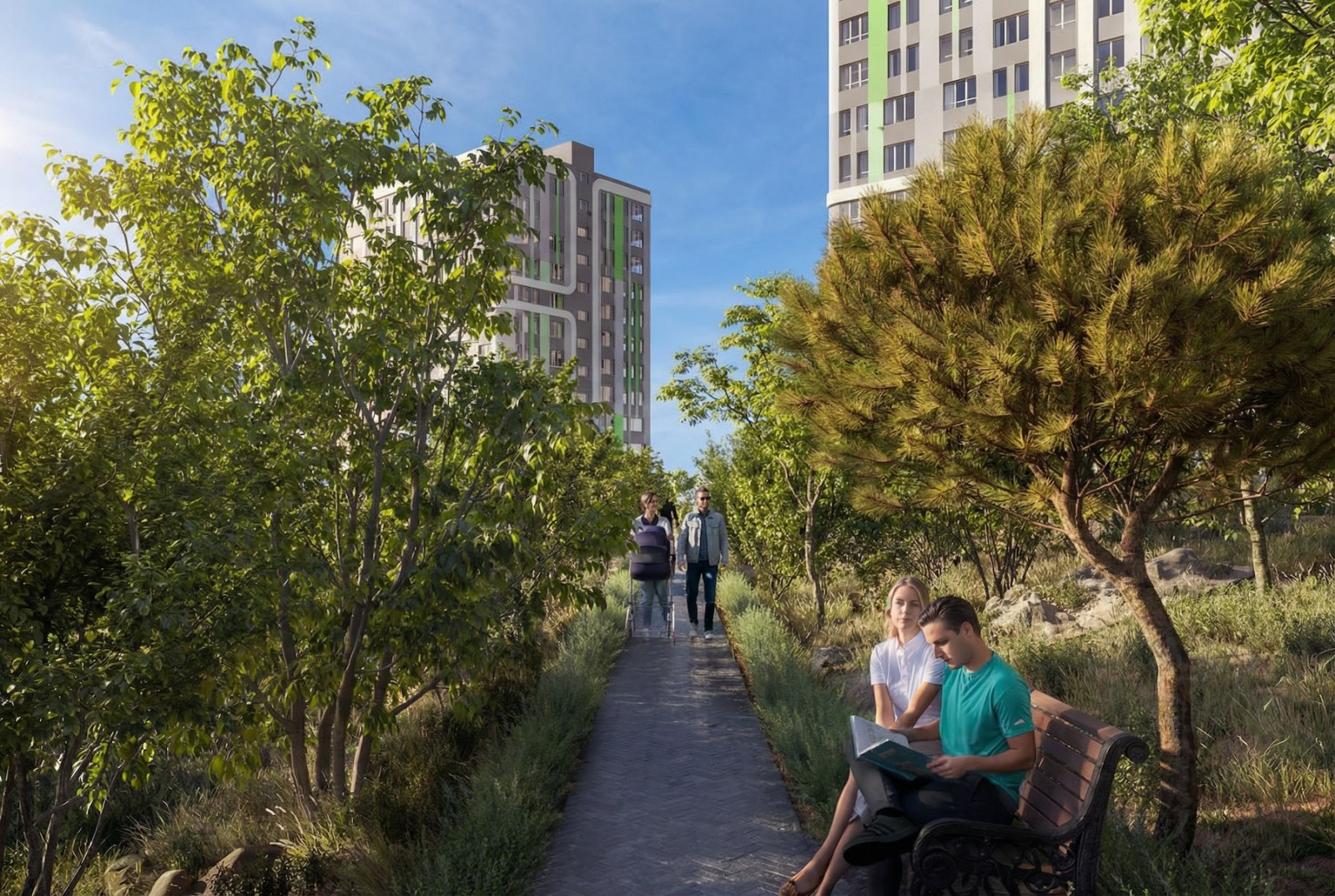 Двенадцать корпусов, большая территория — ходить и жить удобно, шагомер здесь дело рабочее, а не маркетинговое. Парковка — наземная, всё прозрачно, всё на виду. Без машины сложно: «железный конь» в Крыму — вещь не обязательная, но желательная.