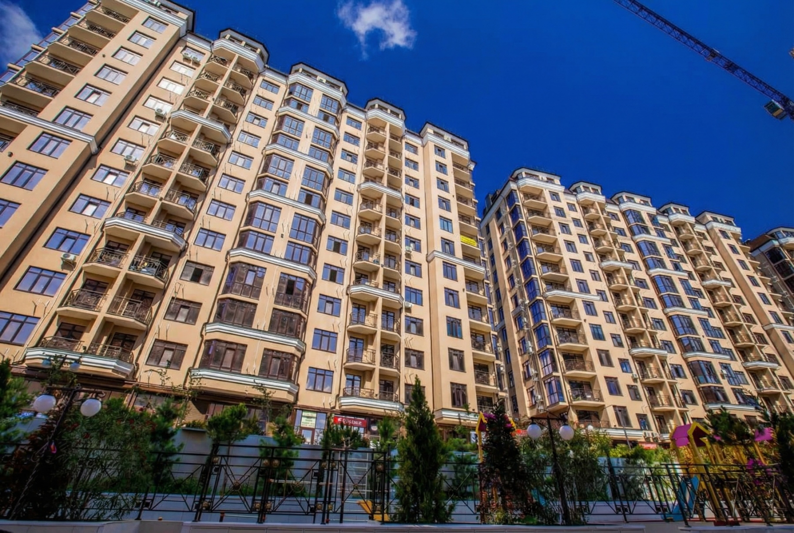 Двор, дети и озеленение Современные детские площадки — выглядят достойно, без необходимости ретушировать сторис. Растения — преимущественно из Италии, часть хвойных настолько эффектна, что будто их уговаривали переехать.