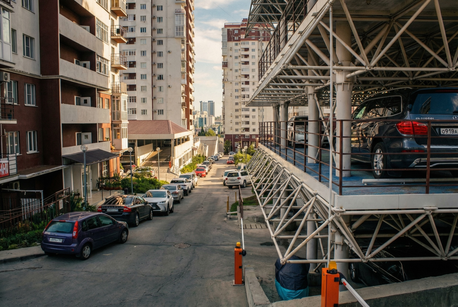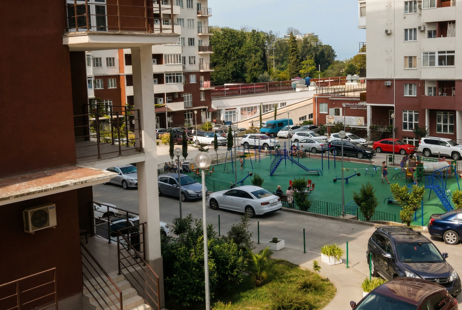 Парковки есть. И не одна “на два колеса”, а несколько многоуровневых и обычных — даже в Сочи можно перестать считать парковку личным квестом. Двор зелёный, не превращён в стоянку. Детская площадка без позолоты, но дети ей пользуются — в российской традиции это уже успех.