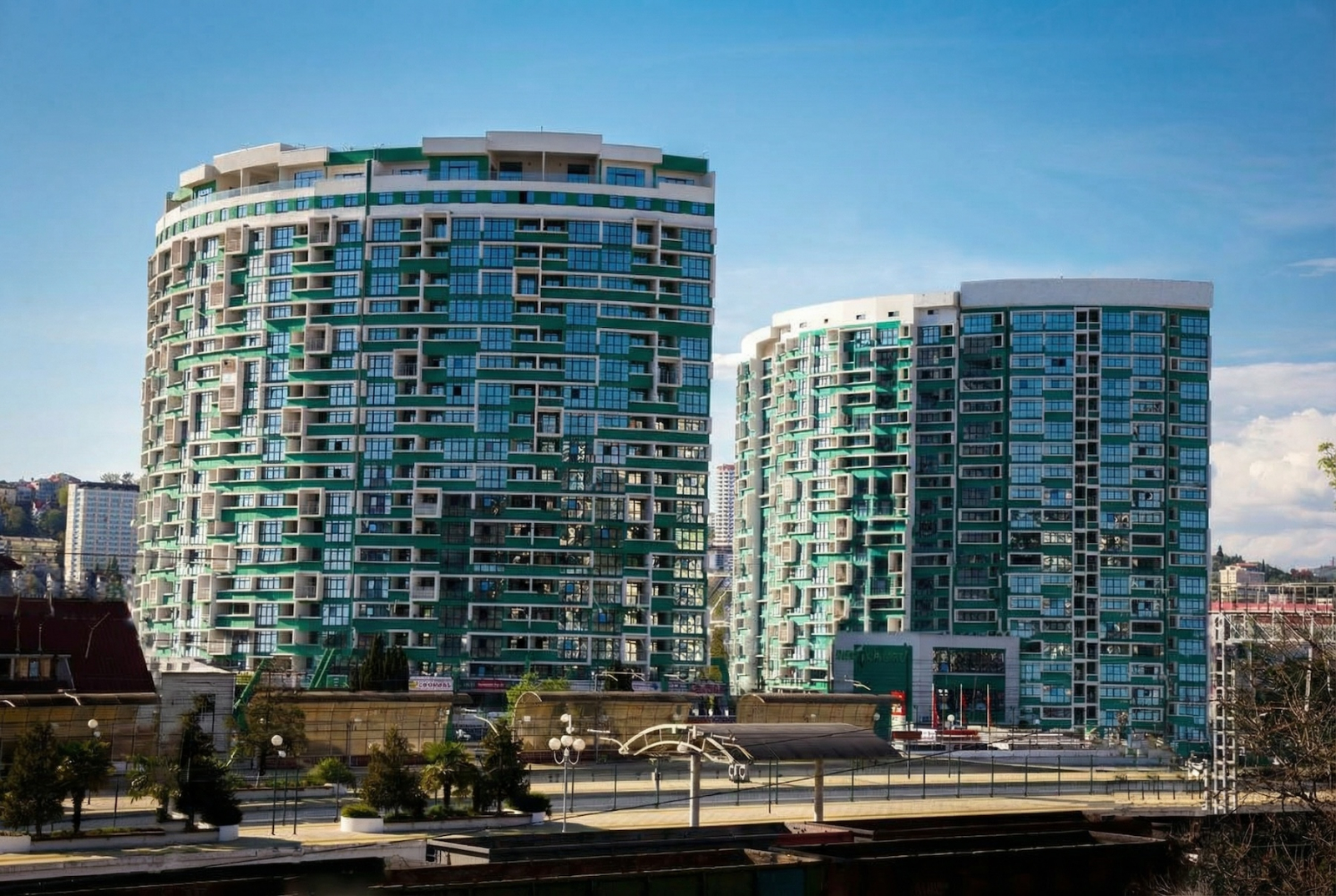 По атмосфере и начинке — Сочи как он есть: Панорамные окна не только для буклета, но реально в квартире. Проснулись — а там море, горы, ну или город. Фасады такие, что иногда хочется сфотографировать не еду, а собственный дом. Места общего пользования — на уровне, где вам захочется остаться в холле чуть дольше и сделать вид, что вы ещё не дошли до квартиры.