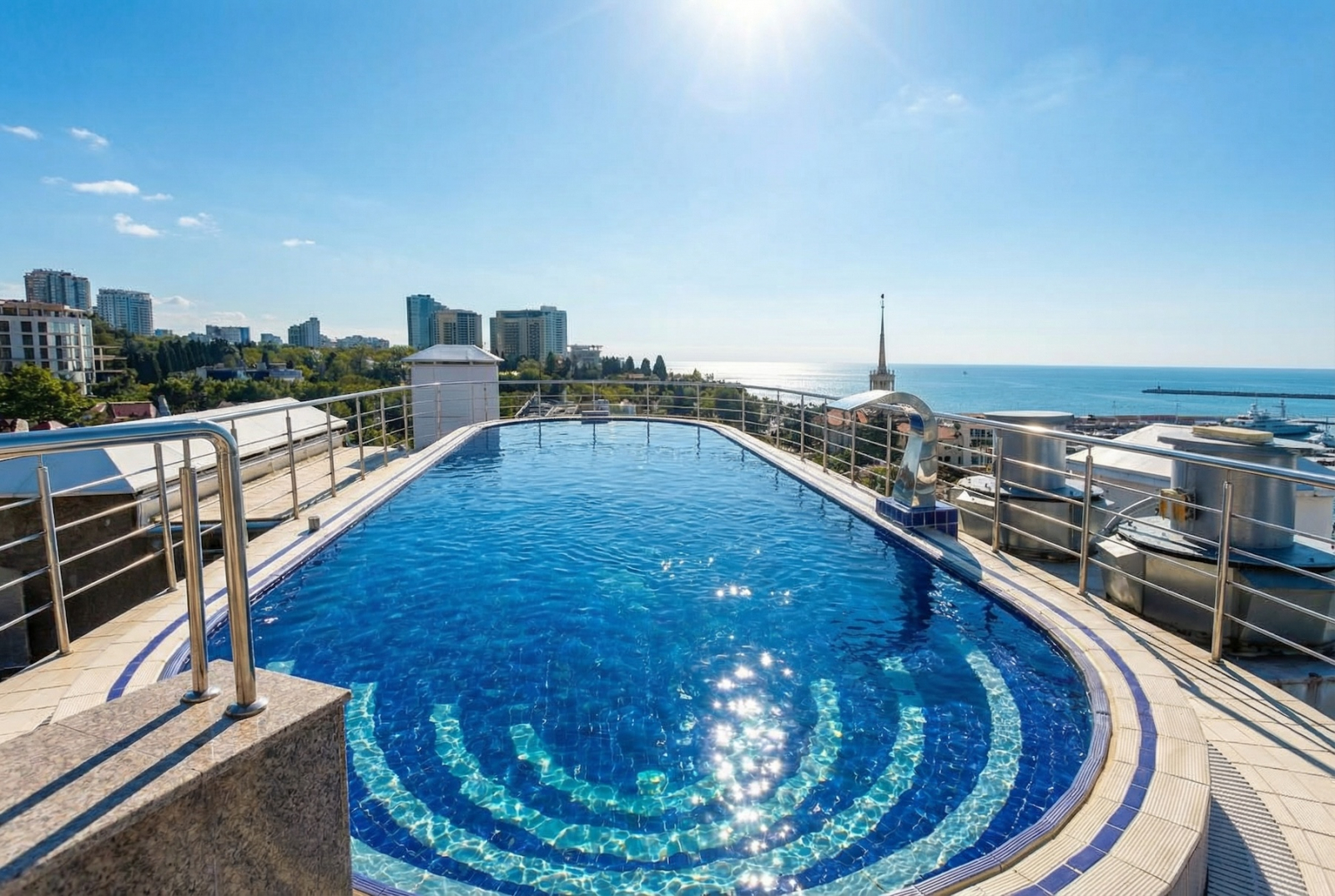 Если когда-то вы себе представляли, как выглядят настоящие "жить у моря" — вот, пожалуйста, ЖК «Версаль». Адрес не скрыт: улица Несебрская, напротив 11-го причала Морского порта. Море в шаге, яхты во втором, апартаменты — в статусе "нежилое", но с бассейном на крыше. Для Сочи это значит: "нежилое", но жизнь кипит, причем прямо на крыше летом, после заката и с коктейлем.