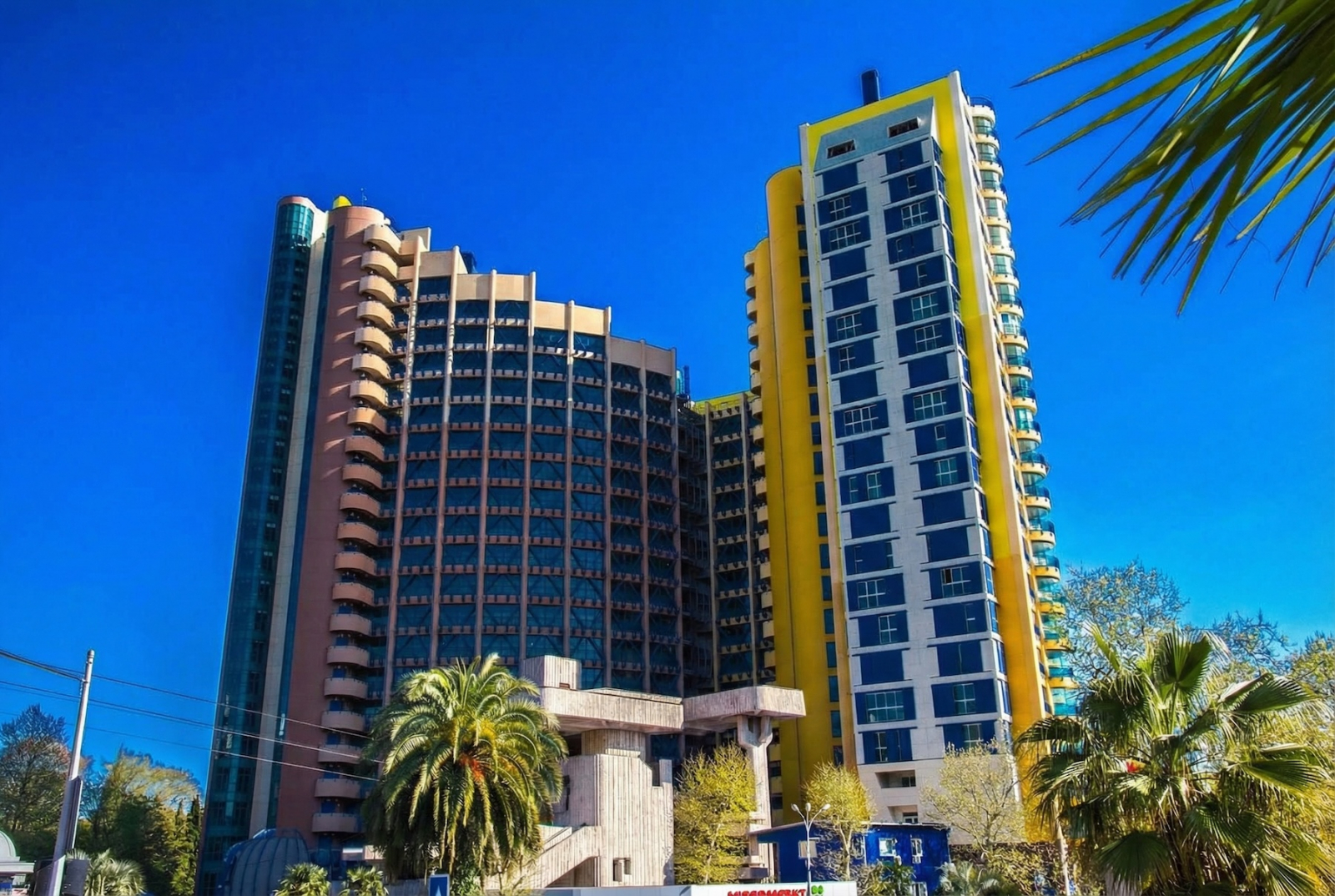 Комплекс уже построен и сдан в микрорайоне Светлана. Внешний вид – сочинский киберпанк без скидок. Стекло, неожиданные формы, архитекторы между “браво” и “что это вообще было?”, но зато дом запоминается с первого взгляда и уже никого не оставляет равнодушным.