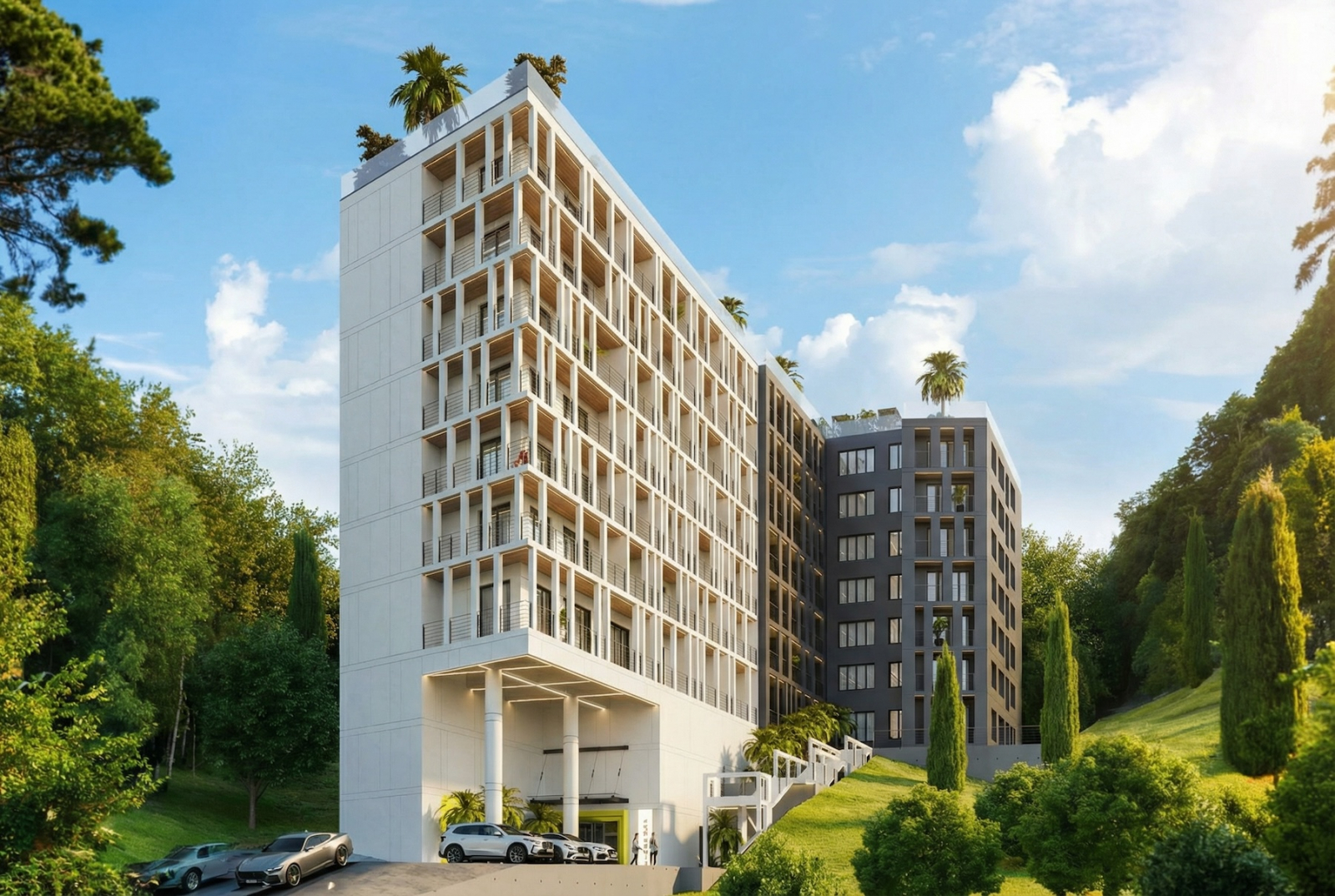 В пешей доступности — море, набережная, пляжная инфраструктура, кафе, прогулки вдоль пальм и воды. За всем серьезным, что больше чем «шезлонг и хачапури»: крупные ТЦ, деловые офисы и взрослый паркинг — это уже на такси или на транспорте. Здесь всё по-честному: работа — потом, отдых — сейчас.
