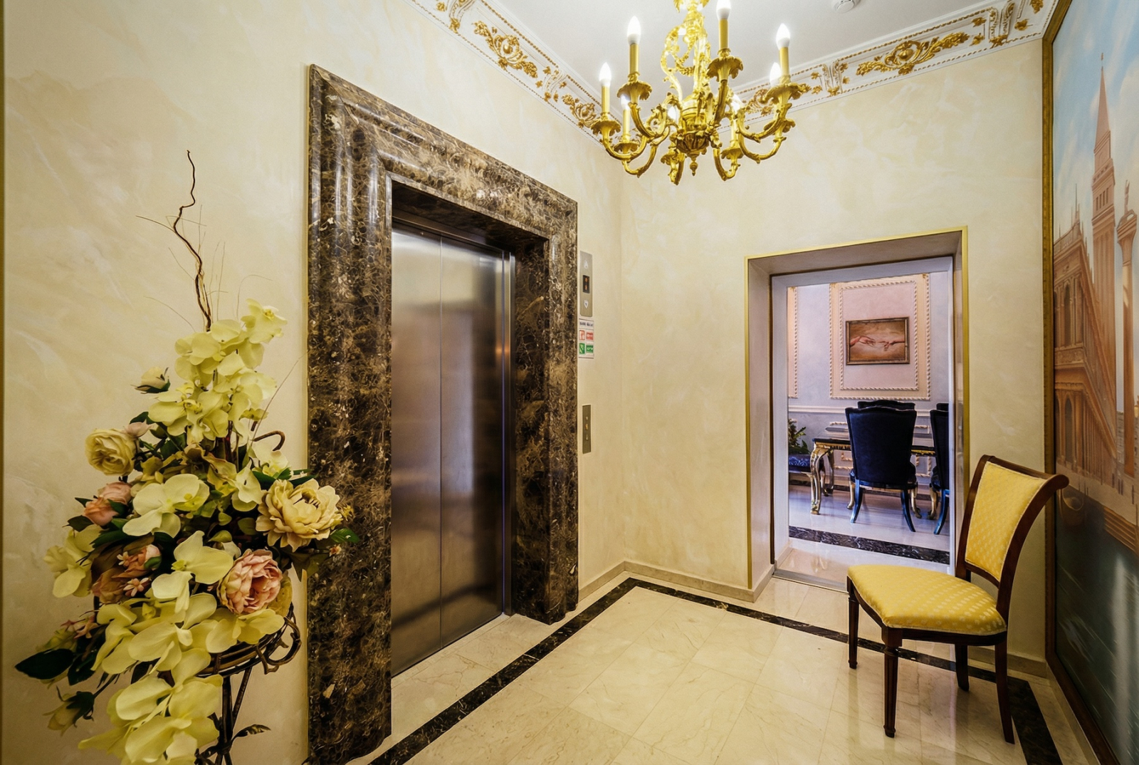 Общественные пространства оформлены в классике — дорогие материалы, мрамор, лепнина. Это не тот случай, когда хочется сказать «ну, перебор...», здесь всё уместно и статусно. Если вам нравится, когда парадная выглядит так, будто из неё сейчас выйдет мистер в смокинге и спросит про ваш утренний кофе — вы точно по адресу.