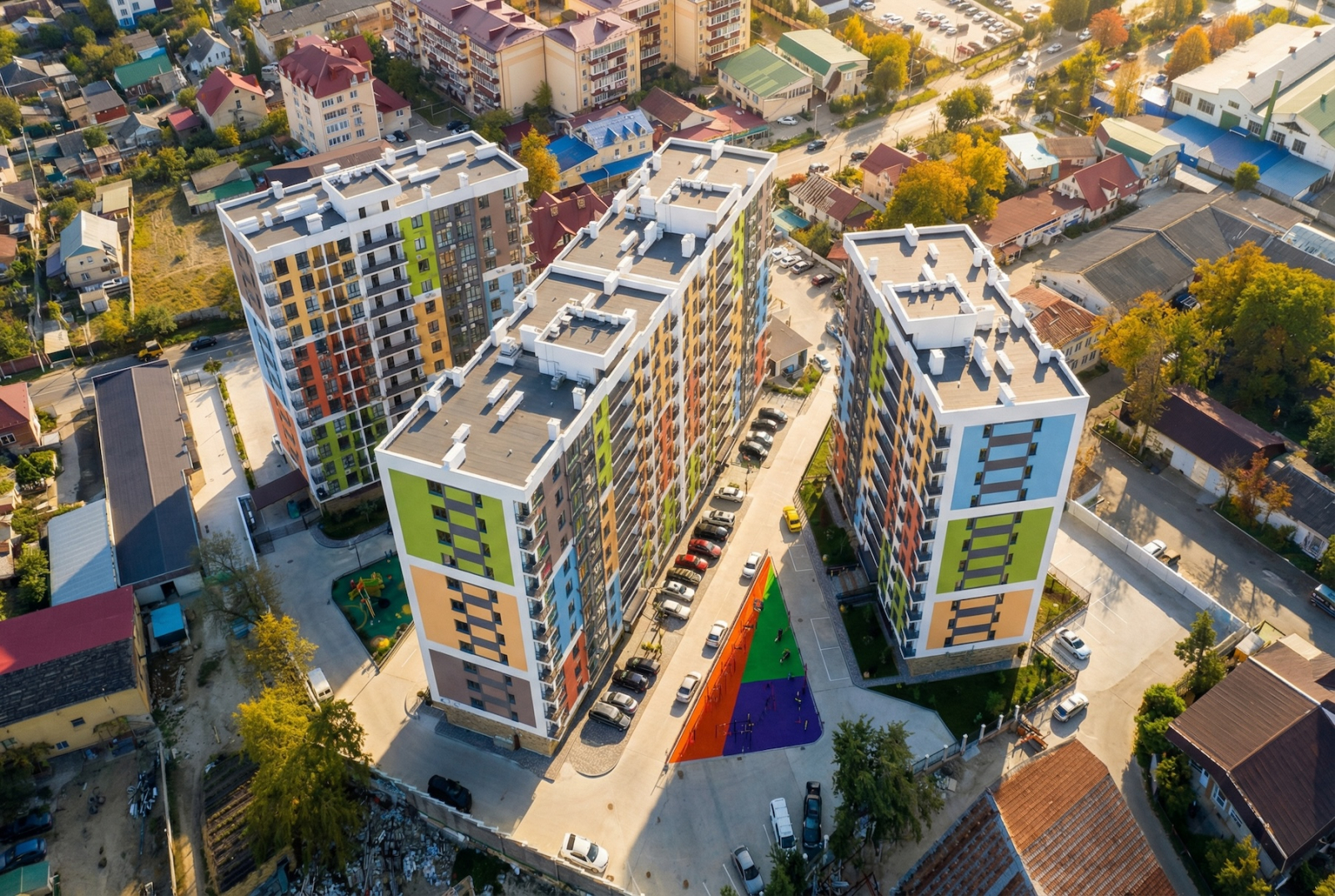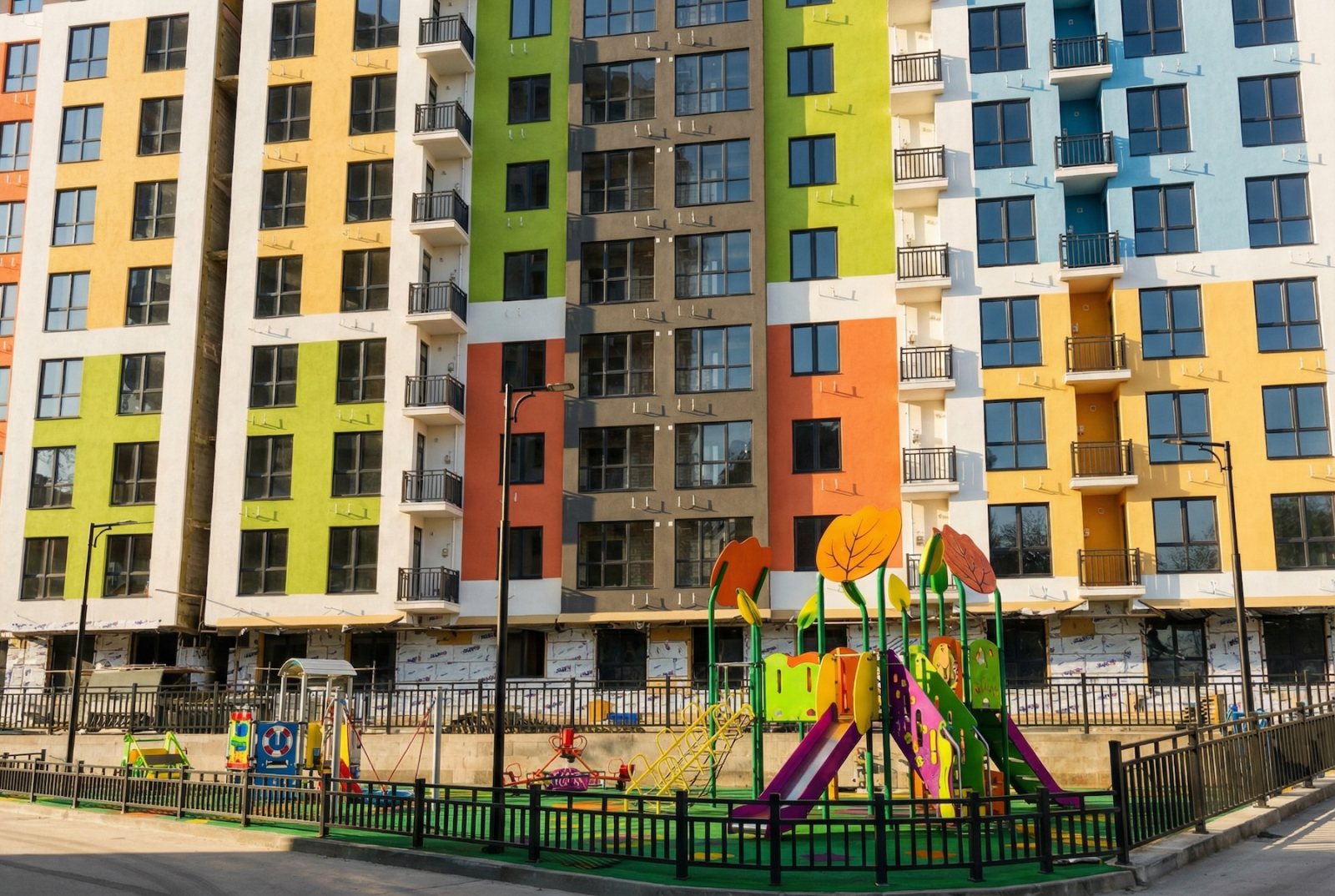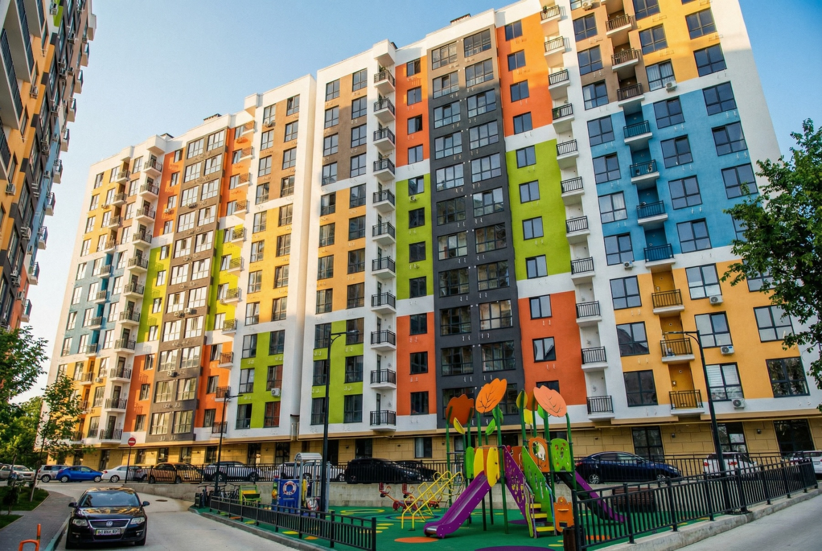 Территория комплекса: — придомовая парковка (не из серии «на 300 машин», но есть и радует), — детские площадки (где дети реально бегают и иногда падают), — спортивные (где взрослые вспоминают, что когда-то знали, что такое спорт).