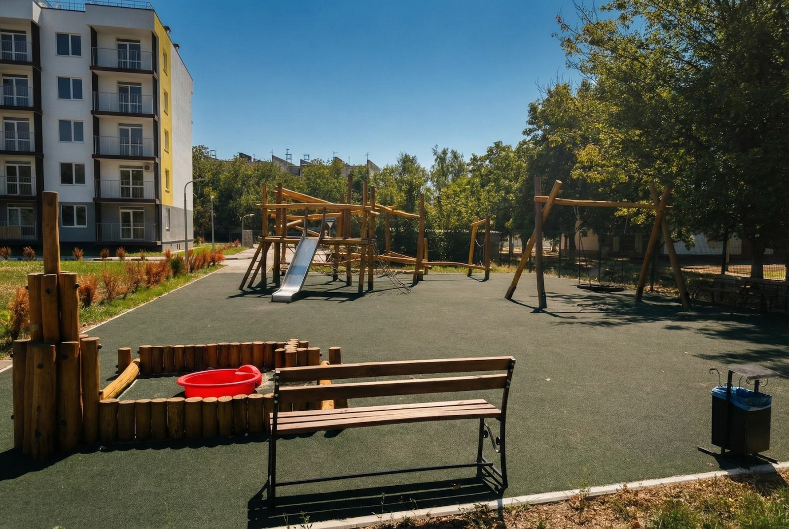 До моря — 10 минут на машине. Рядом школа, можно легко объяснить ребёнку логистику: «Вышел, повернул — и ты в портфеле». Курорты «Золотые пески» и «Крымская Ривьера» — буквально за стеной. Отели, набережная, роскошь ресторанов, песчаный пляж, свобода выбора — всё это не в ваших мечтах, а в 10 реальных минутах от двери.