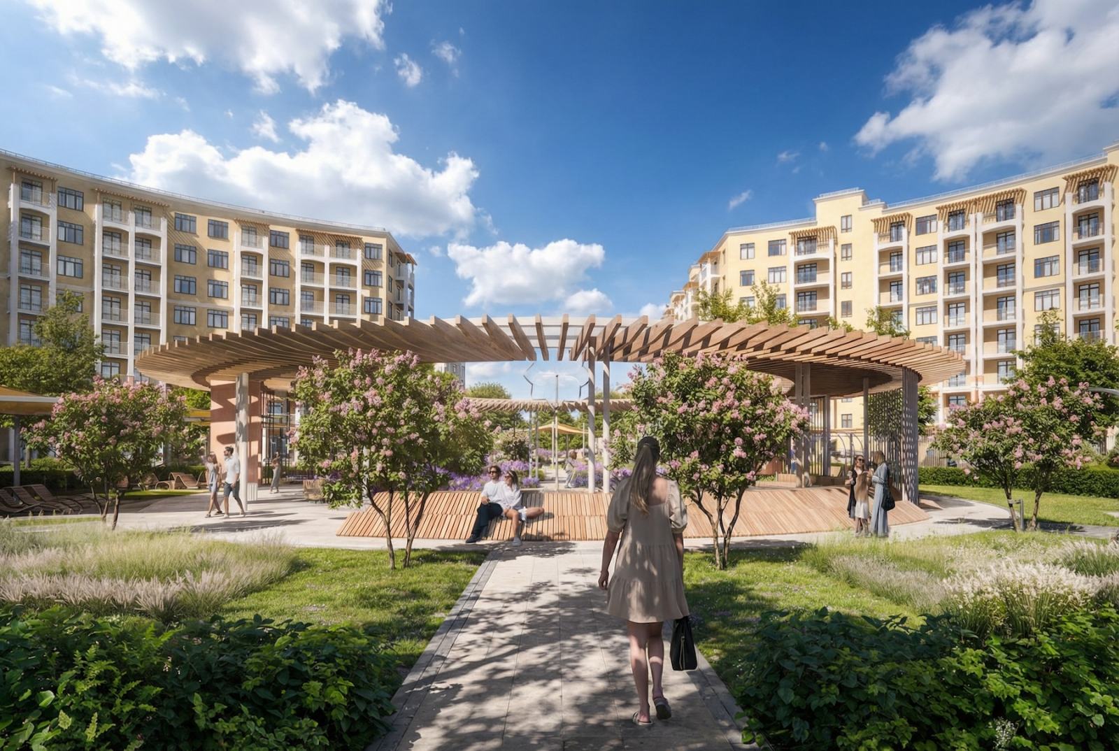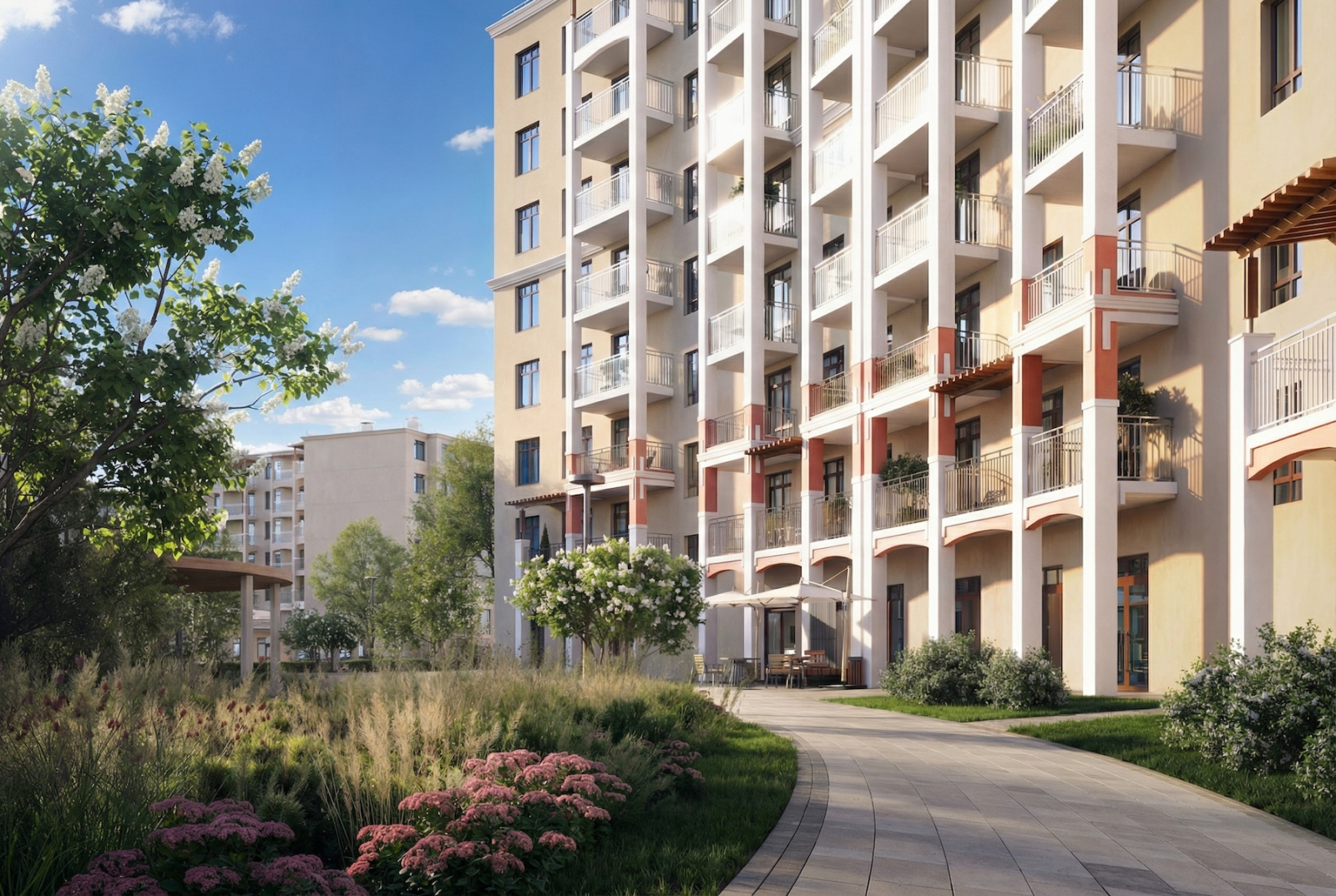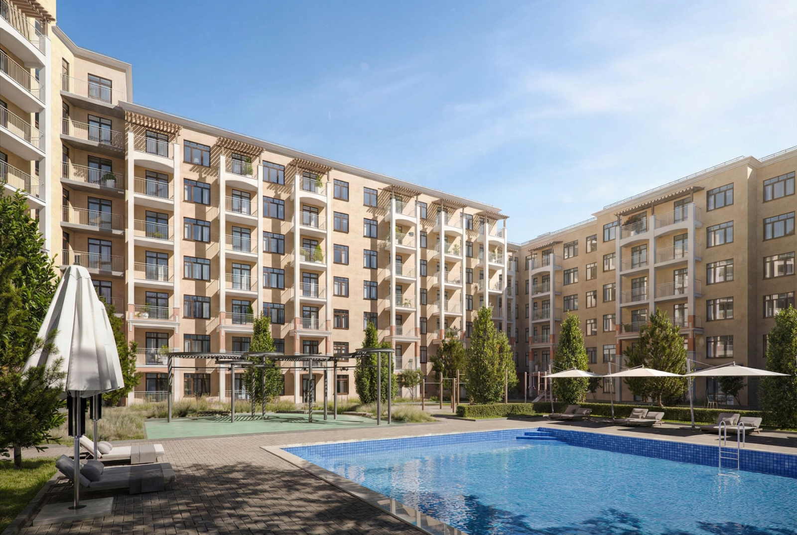 Сукко — тихий, нормальный район, в котором есть даже школа и детский сад. Это уже уровень: не просто приехали на неделю, а реально можно жить весь год без компромиссов. В комплексе 12 корпусов по 8 этажей: это не Москва-Сити, людей меньше, воздуха больше. Планы квартир такие, что в однушке не захочется снимать квартиру на лето, а трёшка влезет даже большой семье с собакой и бабушкой.