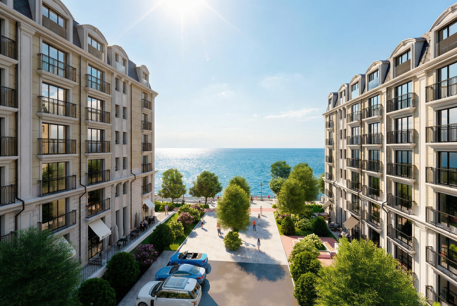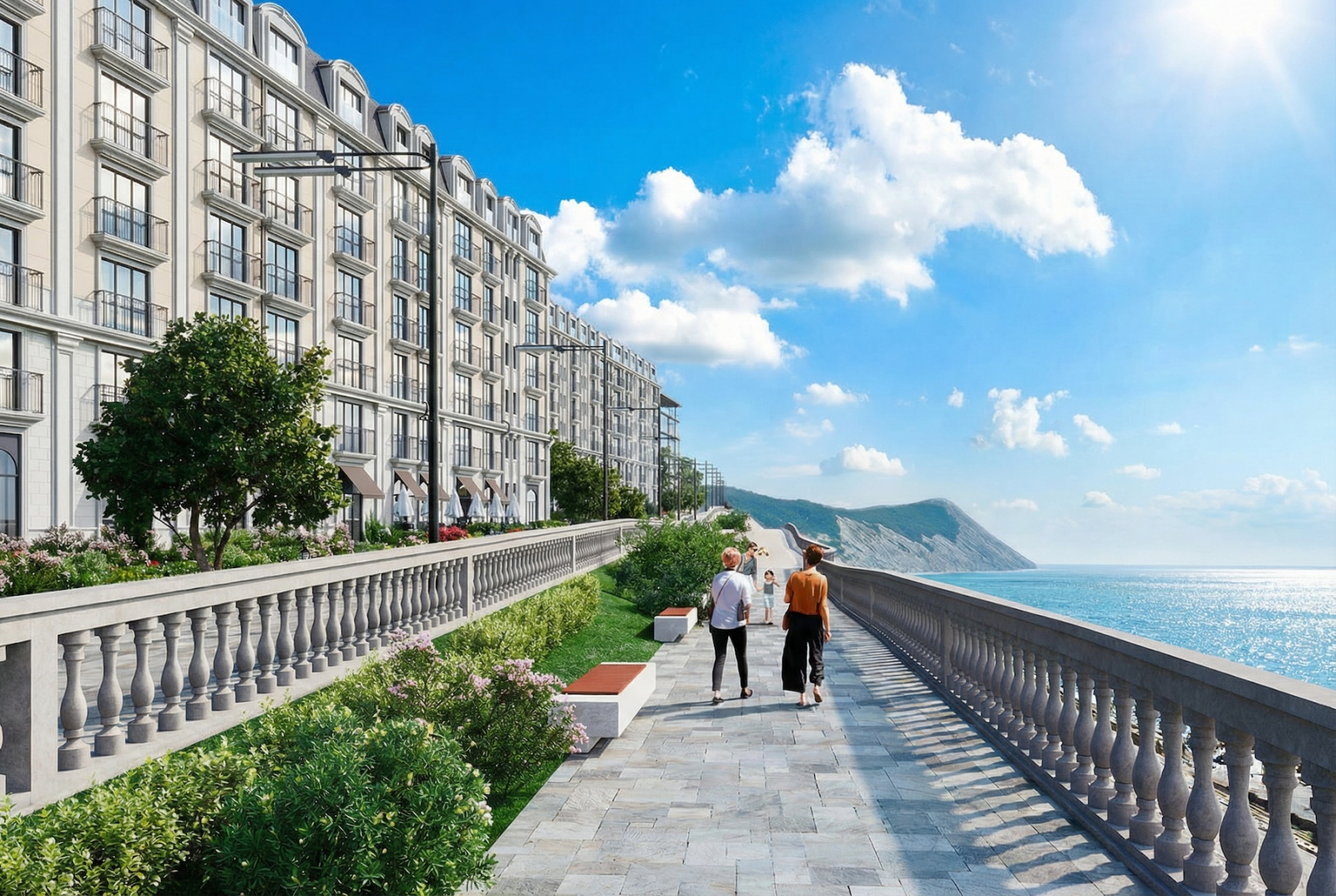 С парковками вопросов нет: и подземная, и гостевая, потому что нормально укомплектованный жк должен думать не только о квартире, но и об автомобиле жильца. Вид на море — не из серии «вот если наклониться из окна пятого этажа». Тут реально вид на море, и он ваш по умолчанию.