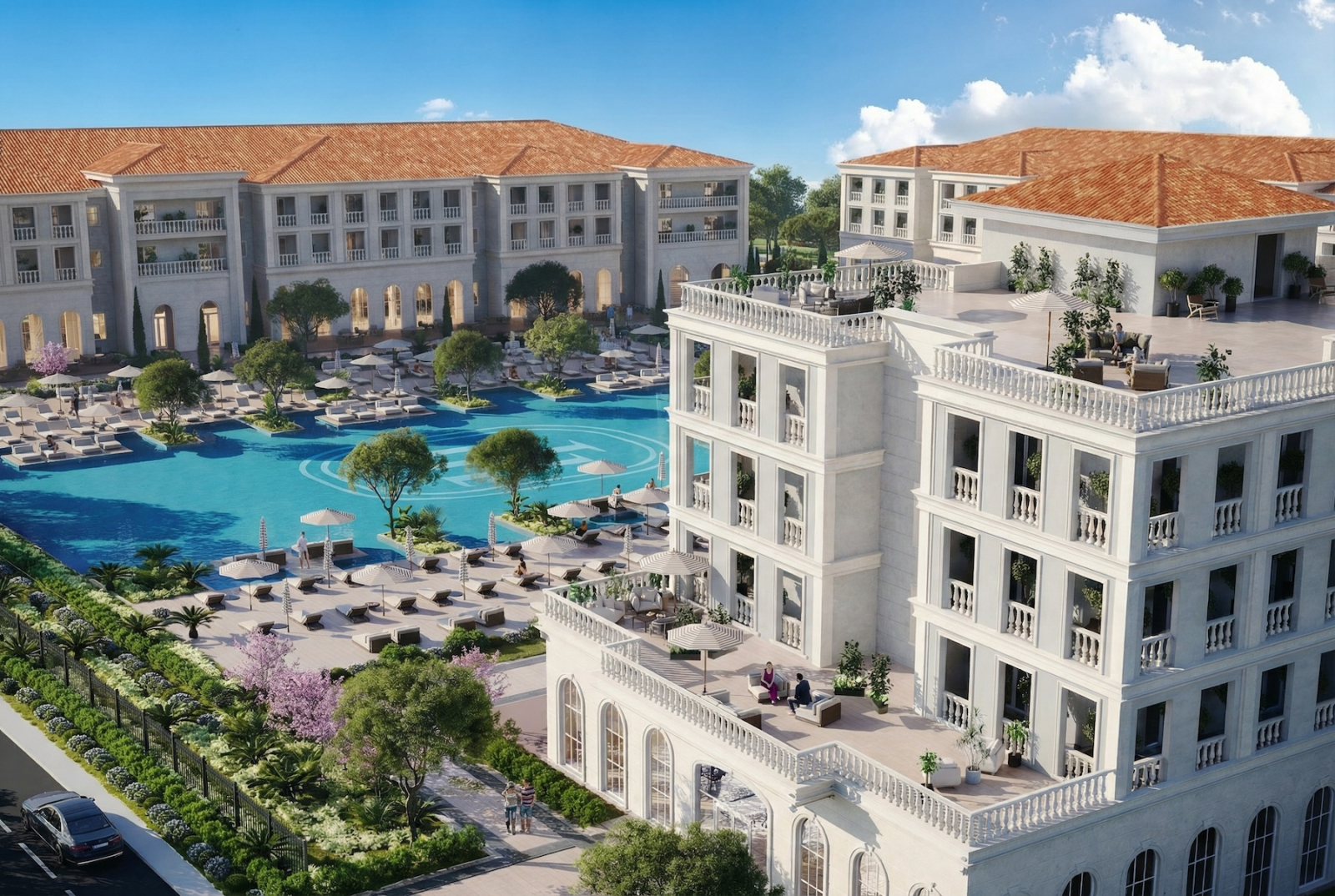 Архитектура — неоклассика, но звучит современно: не колонны ради колонн, а сочетание вечной моды и свежих решений. Фото из местной локации — для тех, кто привык собирать лайки ещё до посадки в самолёт.