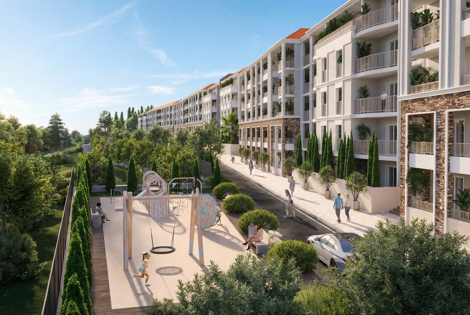 Всего 5 этажей — клубный формат: меньше этажей, меньше соседей, никто не трёт подъезд кодом на лифте и не устраивает шумные переписки в ватсапе домовой группы. Архитектура — средиземноморская классика: тут нравится всем, не выходит из моды и не требует подписки на статус.