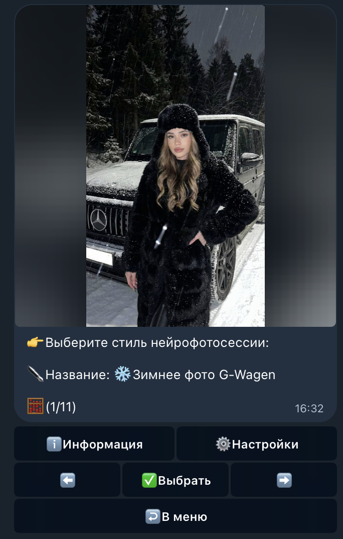 Достаточно нажать "Выбрать", скинуть свою фотографию и нейросеть сама поставит вас в эту фотосессию так, что отличить от настоящей фотосессии будет невозможно.