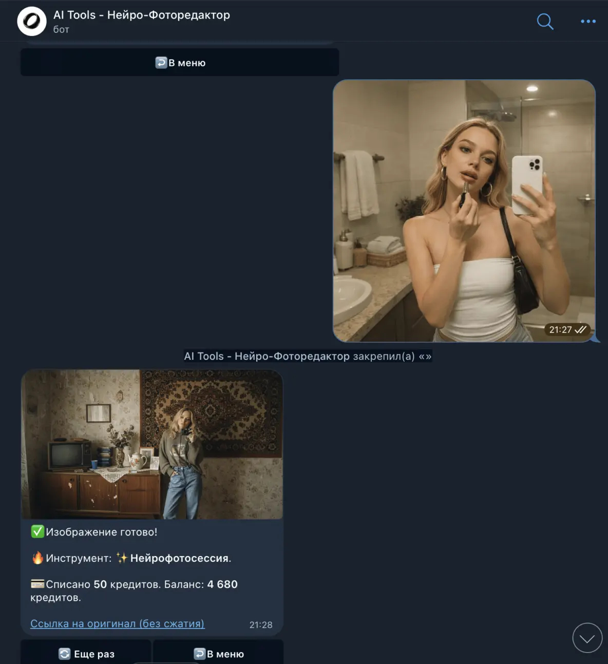 Переходите в бота по ссылке и творите! Делитесь вашими результатами и промптами в комментариях!
