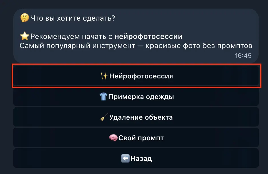 3. Выбираем в списке инструментов "Нейрофотосессия".