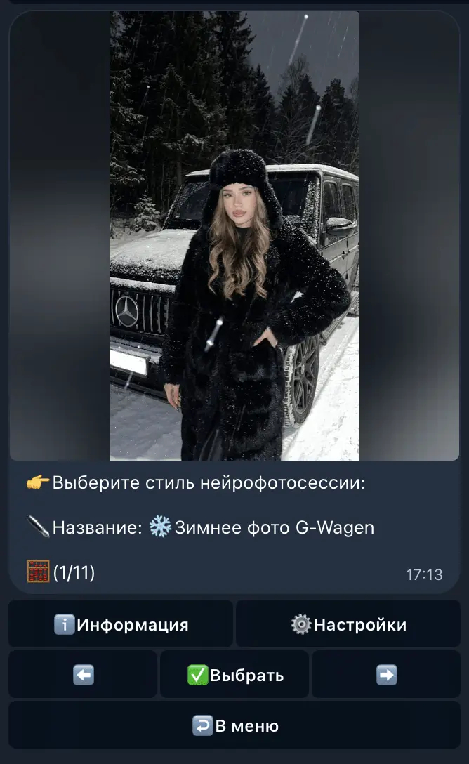 4. Выбираем стиль нейрофотосессии листая их с помощью стрелочек, а потом нажмите "Выбрать".