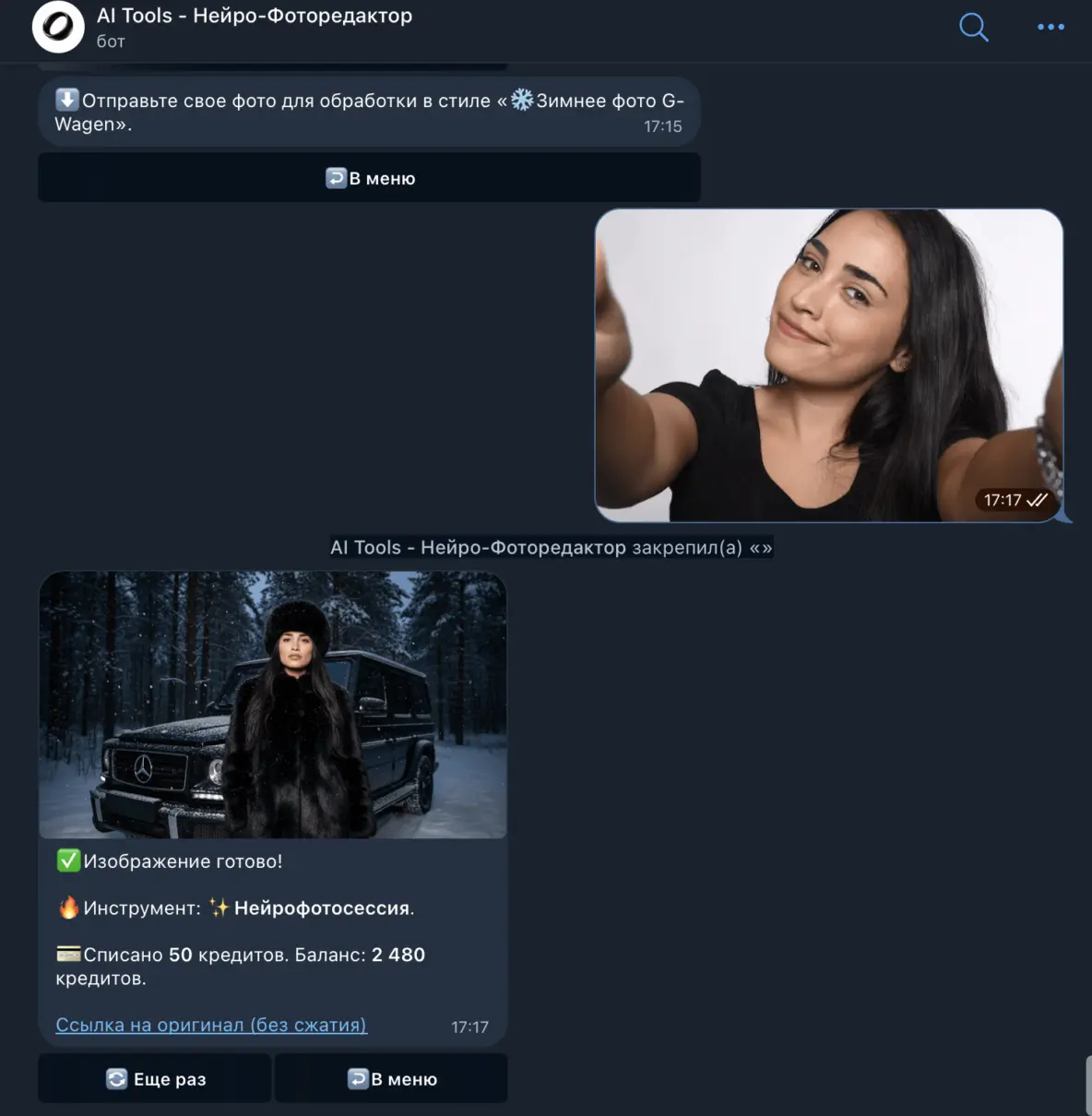 Зайдя в бота, вы получите 100 стартовых кредитов. Генерация одного фото стоит 50 кредитов, так что этого хватит на два. Также можно выполнять задания внутри бота - типо подписки на телеграм-канал, за которую дают еще 50 кредитов.