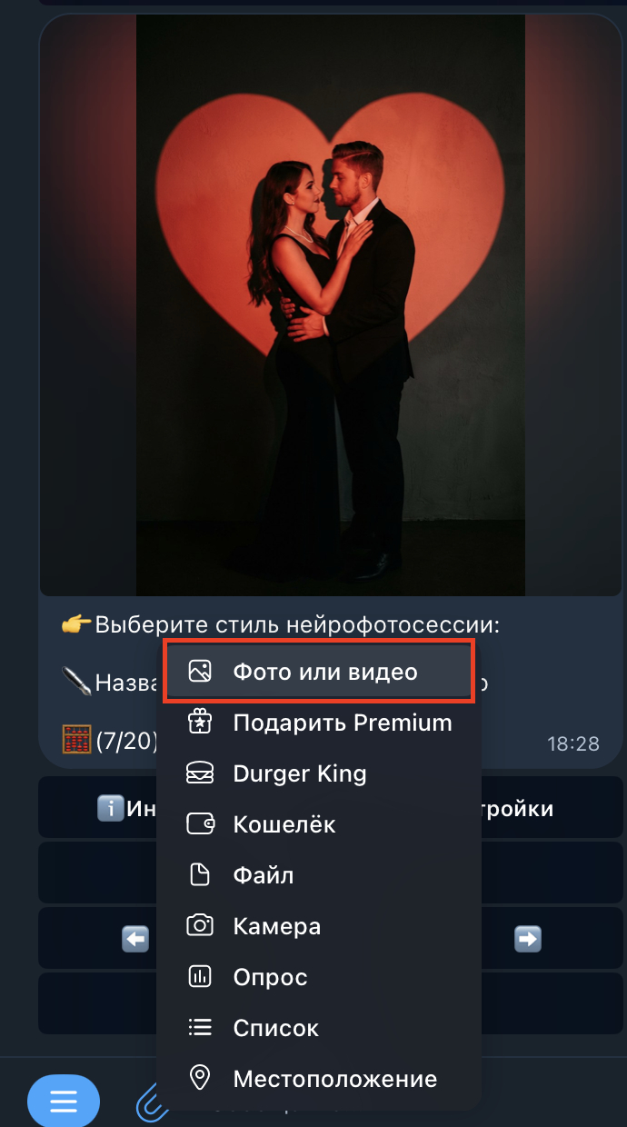 5. Бот предложит прислать фото - пришлите его так, как будто отправляете обычную фотографию.