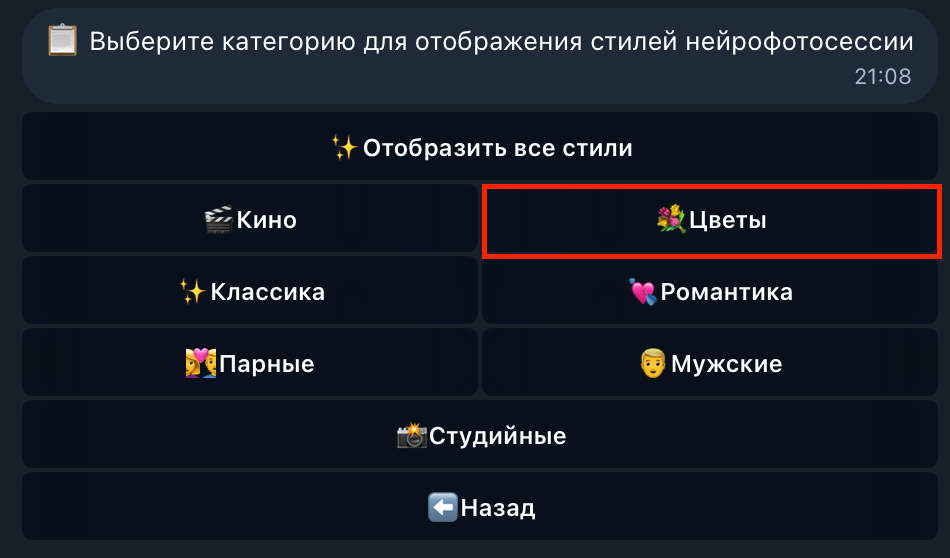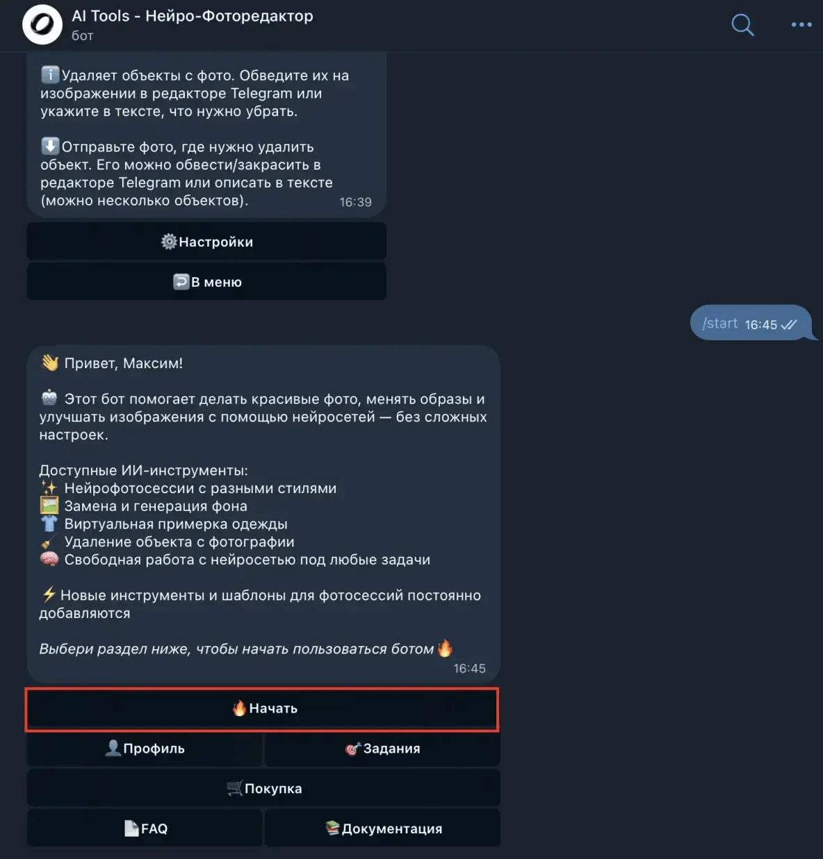 Примечание: первые несколько генераций - бесплатны: при регистрации бот дает вам стартовые кредиты. Также в боте есть система заданий, за которые дают много кредитов, и система "пригласи друга" - с помощью этого можно абсолютно бесплатно и бесконечно генерировать ИИ-фотосессии мечты!