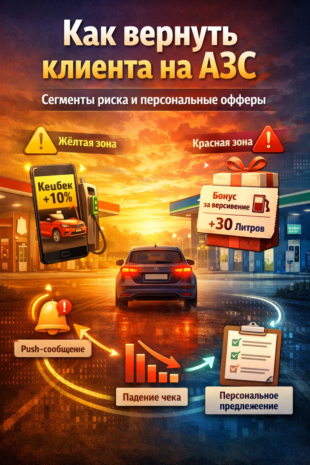 — Оффер: Для «коммьютера» — повышенный кешбэк именно на топливо. Для «магазинного» клиента — связка «кофе + выпечка» или «2-й товар со скидкой», чтобы восстановить эмоциональную привычку.