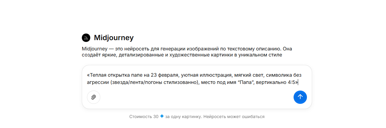 В итоге я для себя вывел простую вещь: решает не «самая модная» нейросеть, а то, насколько точно вы формулируете запрос. Пара минут на нормальные промты на 23 февраля — и у вас уже есть открытка, которая выглядит уместно именно для вашего случая: в садик — доброжелательно, папе — по-настоящему тепло, коллегам — нейтрально и аккуратно, без неловкости и перегибов.