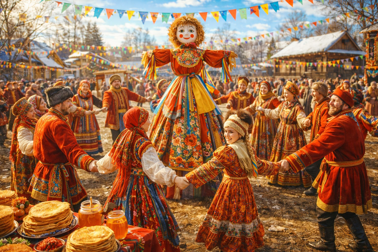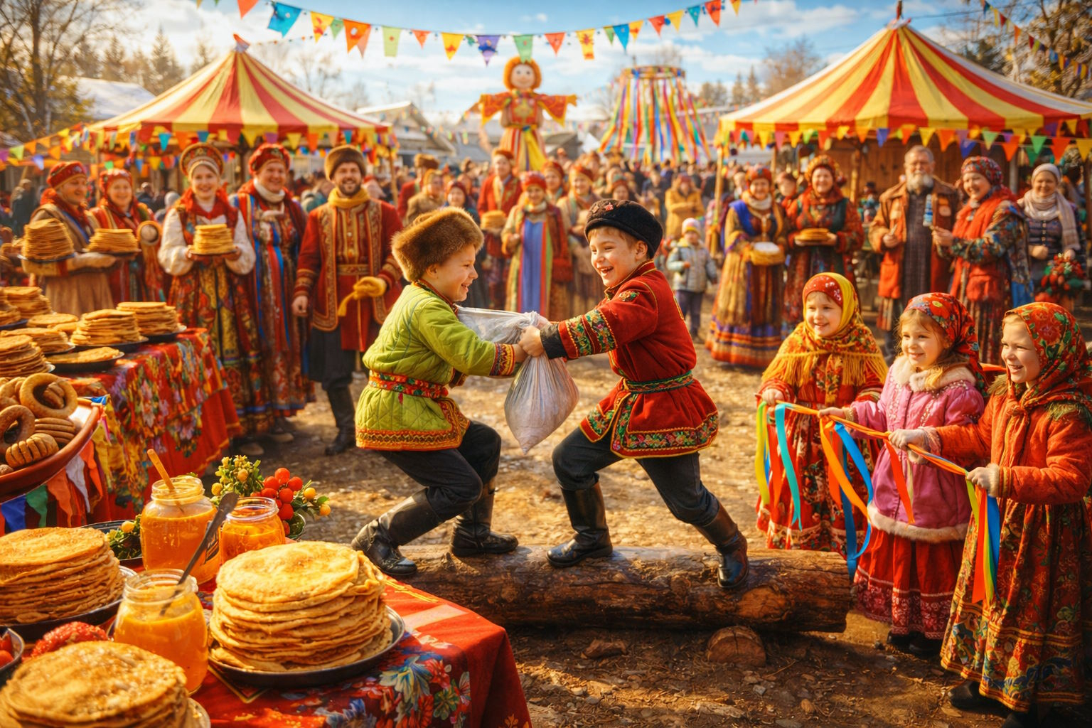 Чтобы получить креативные картинки на Масленицу через нейросеть, достаточно правильно сформировать текстовый запрос. Ниже я привел примеры промптов, которые помогут создать фотографии, отражающие атмосферу Масленицы — веселого, яркого и традиционного праздника. Вы можете адаптировать их под себя, добавив детали.