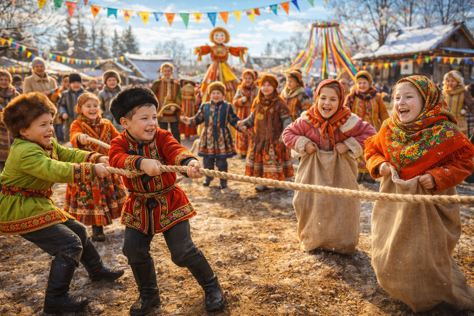 Рекомендуется перечислять традиционные атрибуты праздника: блины, народные костюмы, хороводы, масленичные куклы, ярмарки, снежные пейзажи, балалайки, народные игры, яркие ленточки и декорации — это поможет нейросети создать по-настоящему узнаваемую атмосферу события.