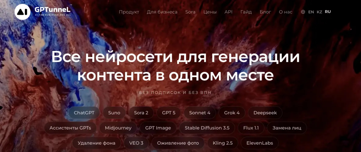 GPTunnel - приватный туннель к зарубежным нейросетям (GPT-5, Claude, Gemini, Midjourney, Sora 2) с защитой данных и стабильным доступом.