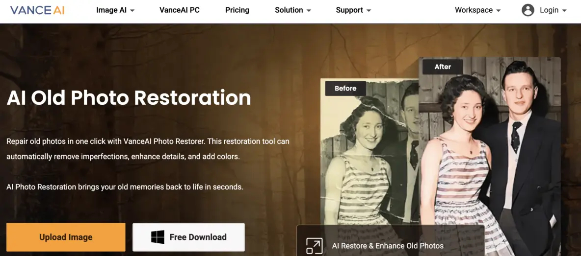 VanceAI фокусируется на реставрации: удаляет царапины, шумы и выцветание, восстанавливает лица и улучшает контраст. После этого фото можно оживить с помощью встроенной анимации.