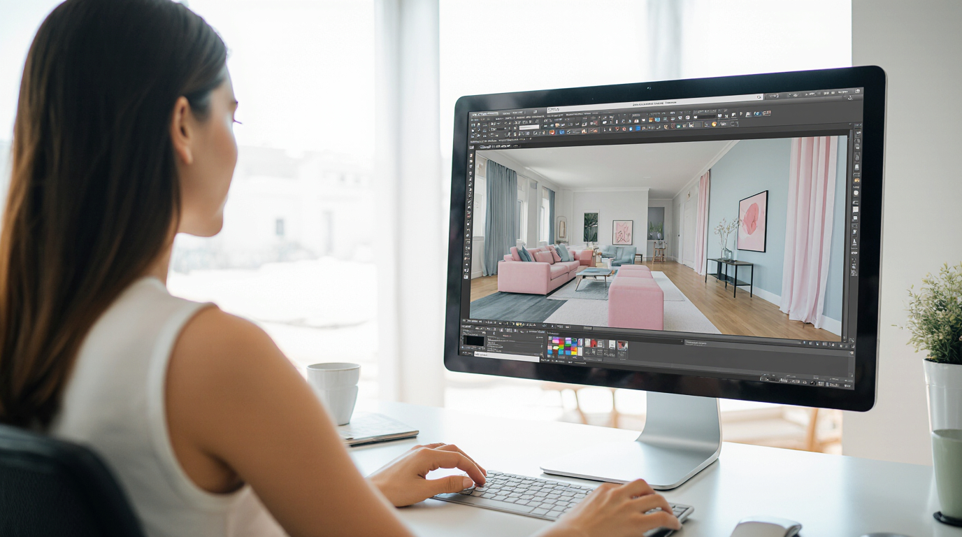 Настоящий швейцарский нож для дизайнера, с которым можно и план сделать, и мебель нарисовать, и визуал собрать. Простой на вид, но очень гибкий. Освоить базу реально за пару вечеров. Можно самому выстроить модель, а потом оживить её с помощью рендер-плагинов — D5 Render, V-Ray, Enscape и других.