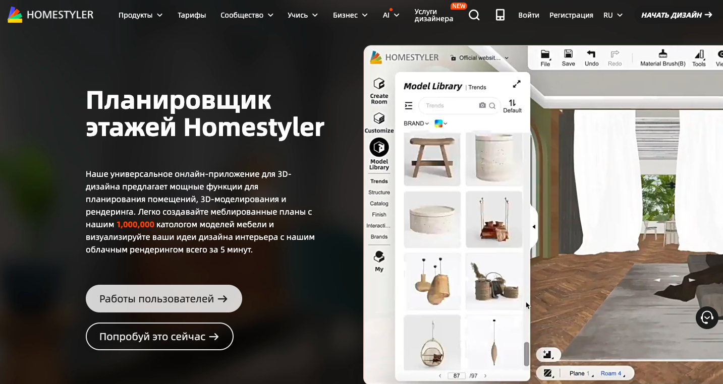 Подойдёт тем, кто хочет показать клиенту настроение или увидеть свою комнату перед ремонтом. Homestyler отлично передаёт атмосферу и помогает быстро визуализировать идею, не тратя часы на настройки.