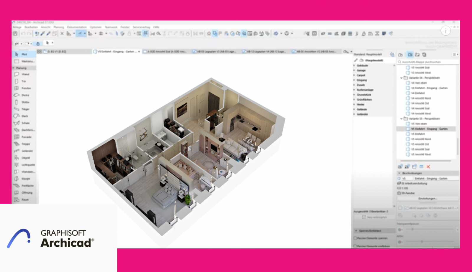 ArchiCAD — это целая BIM-система, где можно спроектировать всё здание, включая интерьер. Создана для тех, кто хочет работать по-честному, с архитектурной логикой: стены, перекрытия, коммуникации — всё в одном проекте.